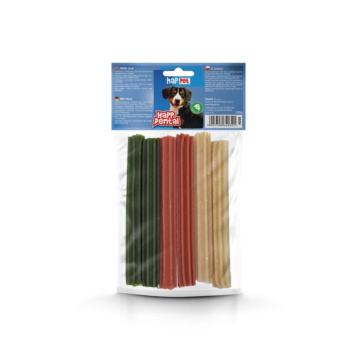 Happ Dental wegetariański z ryżem dla psa - 6 sztuk Happet Dbaj o zdrowie jamy ustnej swojego pupila dzięki przysmakom Happ Dental! Te wegetariańskie gryzaki z ryżem są idealnym rozwiązaniem dla psów, które potrzebują odpowiedniej higieny zębów. Kształt…