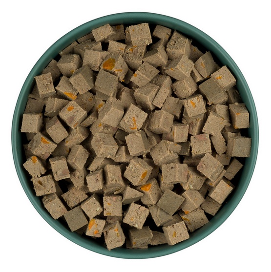 Mięso i podroby z kozy 90%, marchew 5,5%, zioła 2,5%, minerały 1%, wapień muszlowy 1%.
