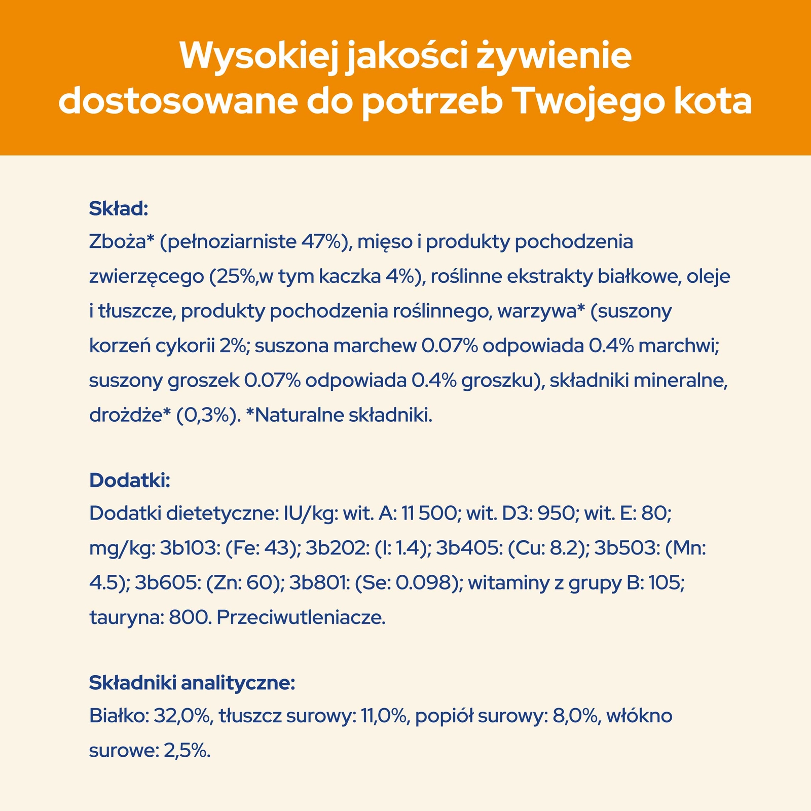 Wysokiej jakości białka, zawarte w karmie, gwarantują nie tylko doskonały smak, ale również łatwe przyswajanie. Karma o smaku kaczki dostarcza niezbędnych substancji odżywczych oraz składników energetycznych, co jest szczególnie istotne dla dorastających kotów.