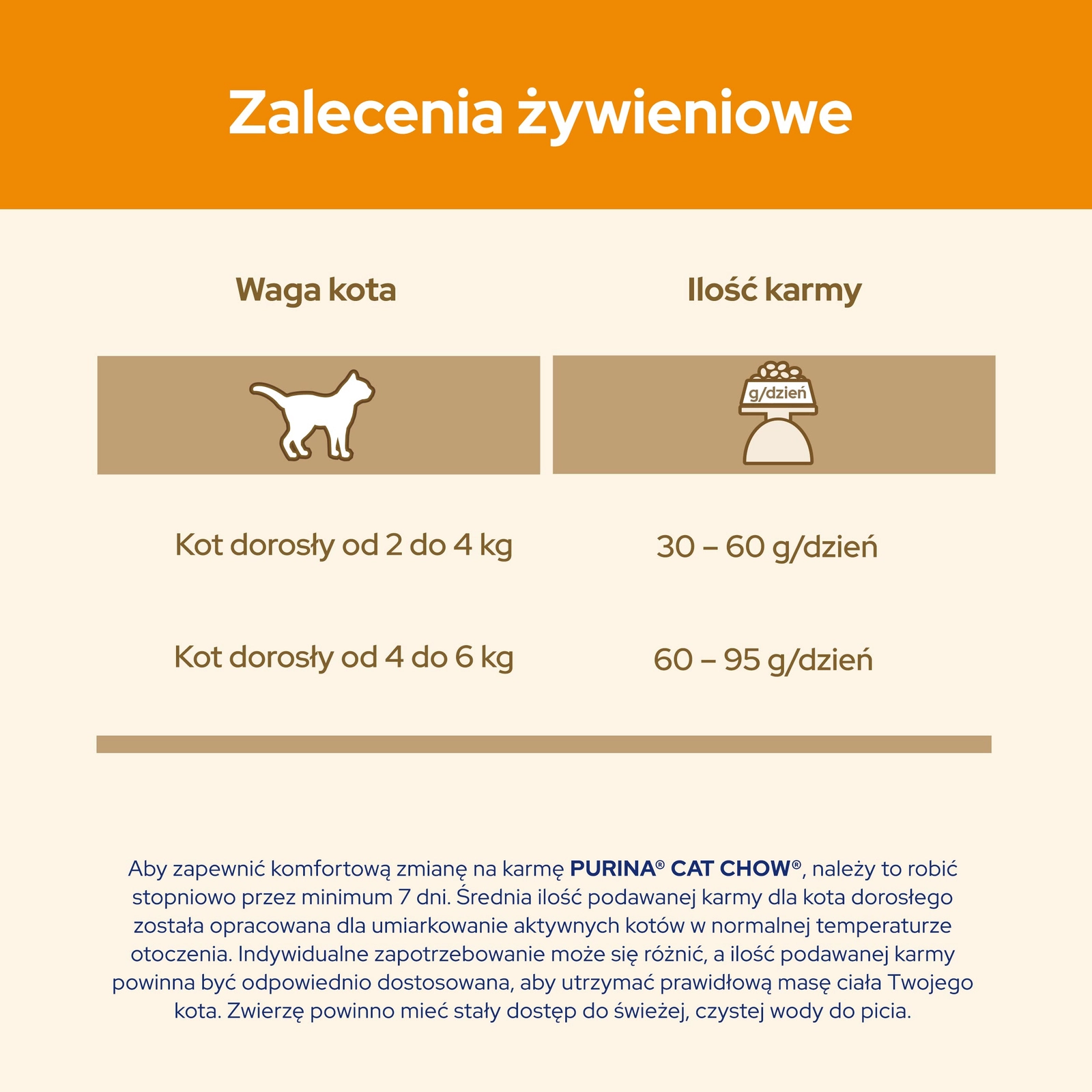 Dawkowanie: W zależności od wagi kota, dzienna porcja wynosi od 30 do 90 g.