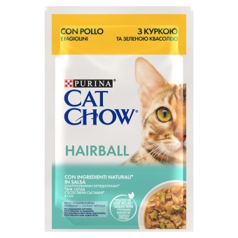 Purina Cat Chow Hairball Karma Z Kurczakiem I Zieloną Fasolką W Sosie 85g