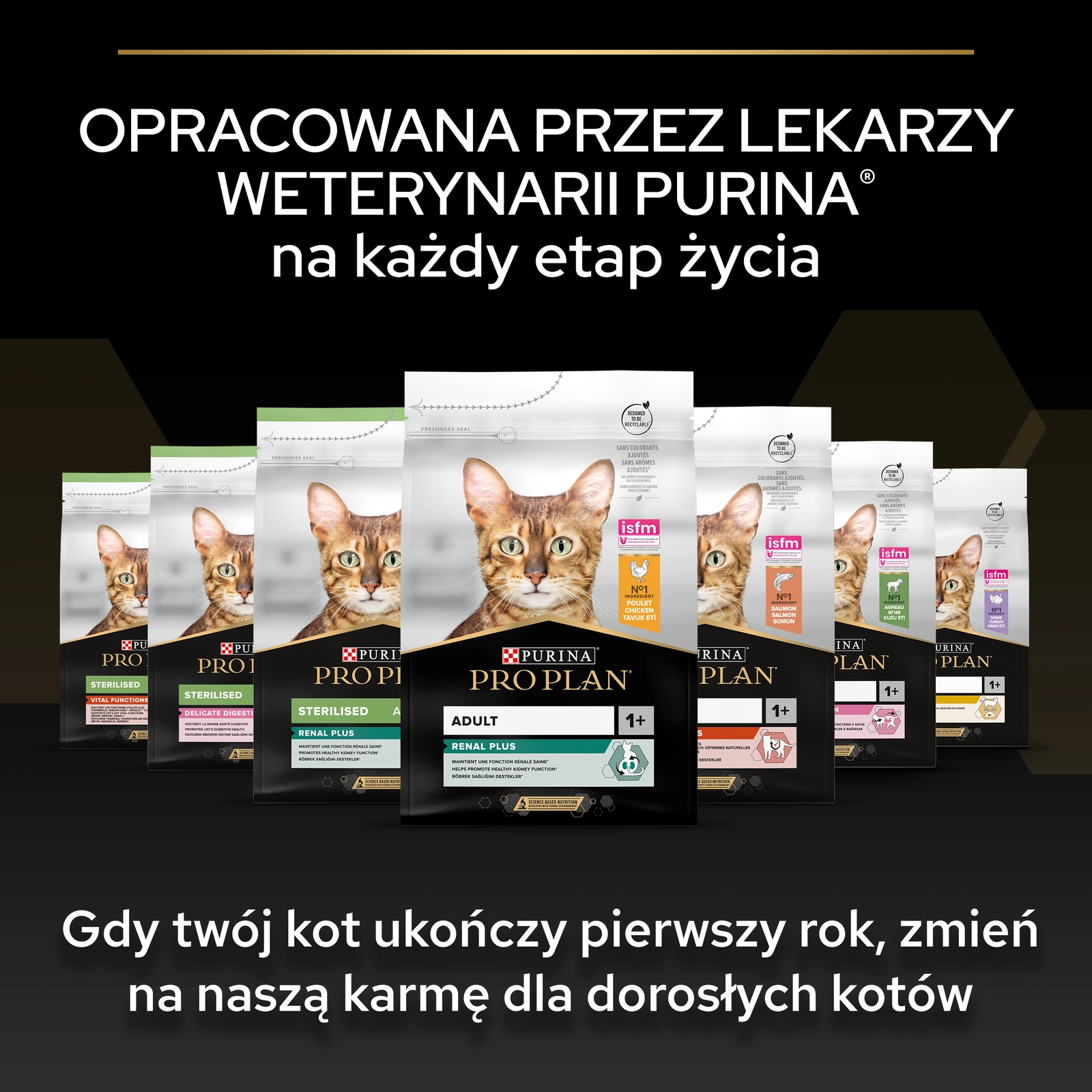 Purina Pro Plan Original Kitten to zbilansowana karma stworzona z myślą o kociętach w wieku od 1 do 12 miesięcy oraz dla ciężarnych i karmiących kotek. Dzięki starannie dobranym składnikom, karma wspiera rozwój naturalnych systemów ochronnych, co jest kluczowe dla zdrowia Twojego kota przez całe życie. Pro Plan zapewnia niezbędne składniki odżywcze, które przyczyniają się do prawidłowego wzrostu i długiego, zdrowego życia.