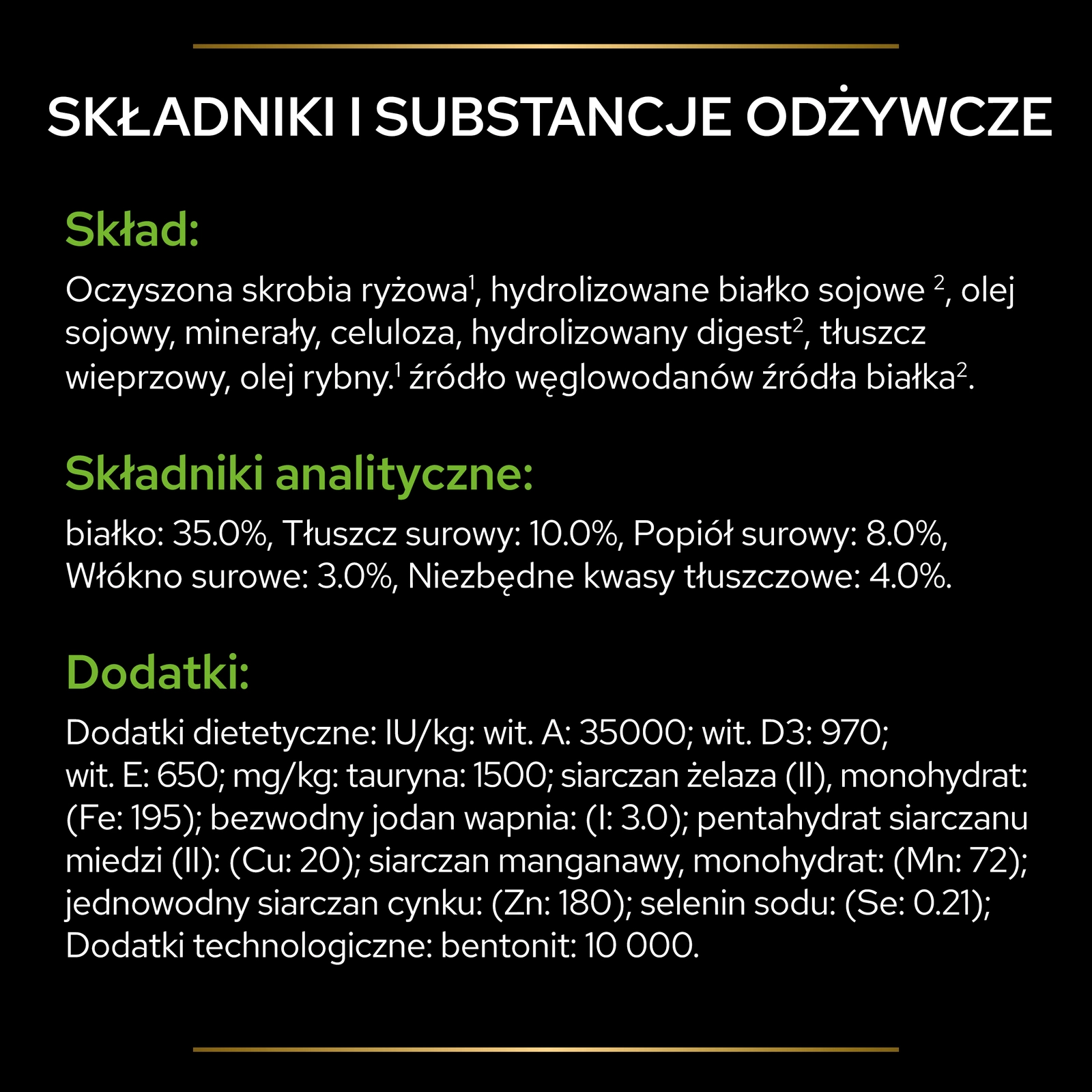 Skrobia ryżowa jest jedynym źródłem węglowodanów o małej zdolności alergizacji, a hydrolizowane białko zapewnia wysoką strawność diety.