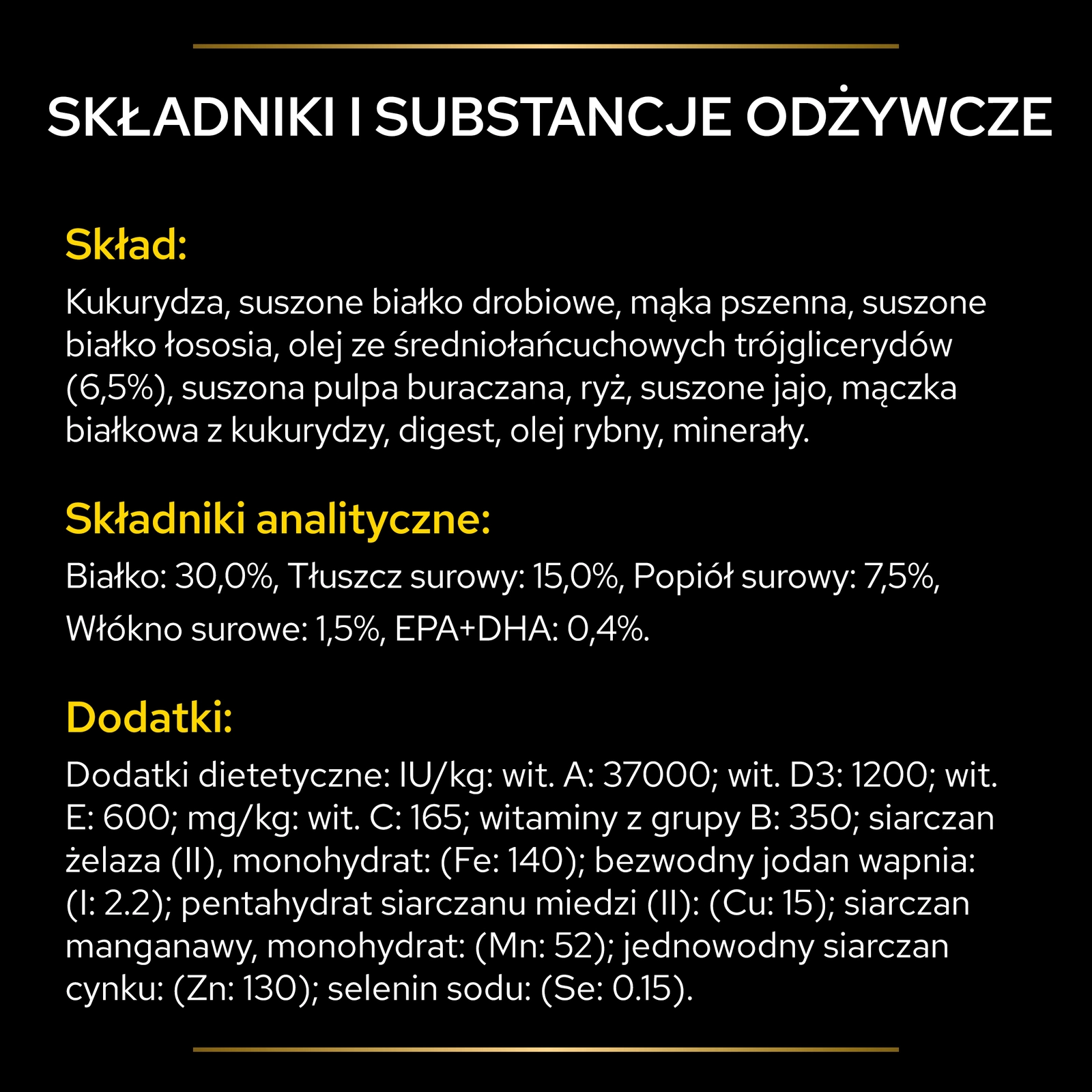 Karma wspiera funkcje poznawcze i zdrowie mózgu psa dzięki zawartości składników odżywczych, takich jak arginina, EPA+DHA, przeciwutleniacze (witamina E i C), witaminy z grupy B oraz selen. Oparta na średniołańcuchowych trójglicerydach (MCT) oraz składnikach neuroprotekcyjnych, które wspomagają poprawę funkcjonowania mózgu. Opracowana we współpracy z ekspertami z Royal Veterinary College w Londynie, karma ta jest wynikiem zaawansowanych badań nad zdrowiem mózgu psów.