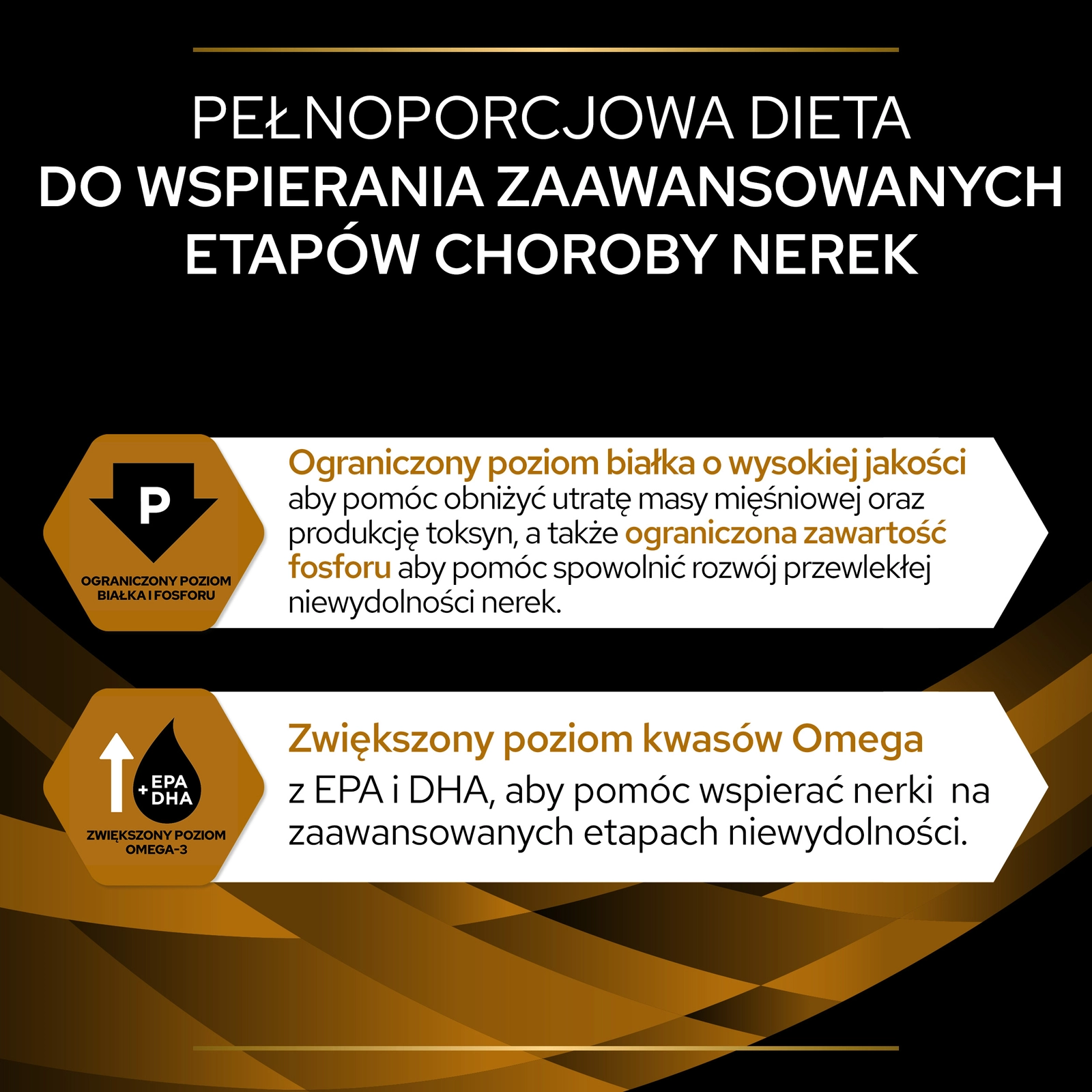 PURINA Pro Plan Veterinary Diets NF Renal Function Cat 350g to karma dietetyczna, która wspiera funkcjonowanie nerek u kotów z przewlekłą niewydolnością. Dzięki niskiemu poziomowi fosforu i ograniczonej, ale wysokiej jakości ilości białka, jest idealnym rozwiązaniem dla zwierząt wymagających szczególnej diety.