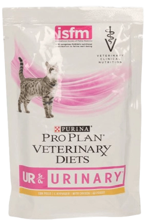 PURINA Pro Plan Veterinary Diets UR Urinary Cat Łosoś 85g to pełnoporcjowa karma mokra, dedykowana dorosłym kotom borykającym się z problemami układu moczowego. Dzięki starannie opracowanej recepturze, wspiera zdrowie kotów cierpiących na kamicę struwitową oraz szczawianową. Karma przyspiesza rozpuszczanie istniejących kamieni i zapobiega ich ponownemu powstawaniu, chroniąc przed nawrotem objawów zapalenia pęcherza moczowego.