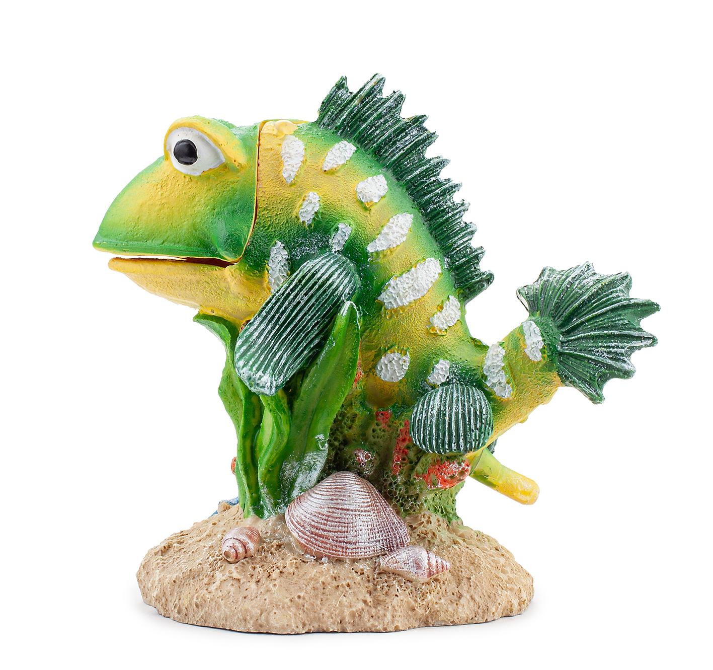Ozdoba wykonana jest z poliestru, co zapewnia jej łatwe tonienie oraz bezpieczeństwo dla ryb i innych wodnych stworzeń. Wymiary ozdoby to 11 cm x 6 cm x 10 cm, co sprawia, że idealnie wkomponuje się w każdy zbiornik.