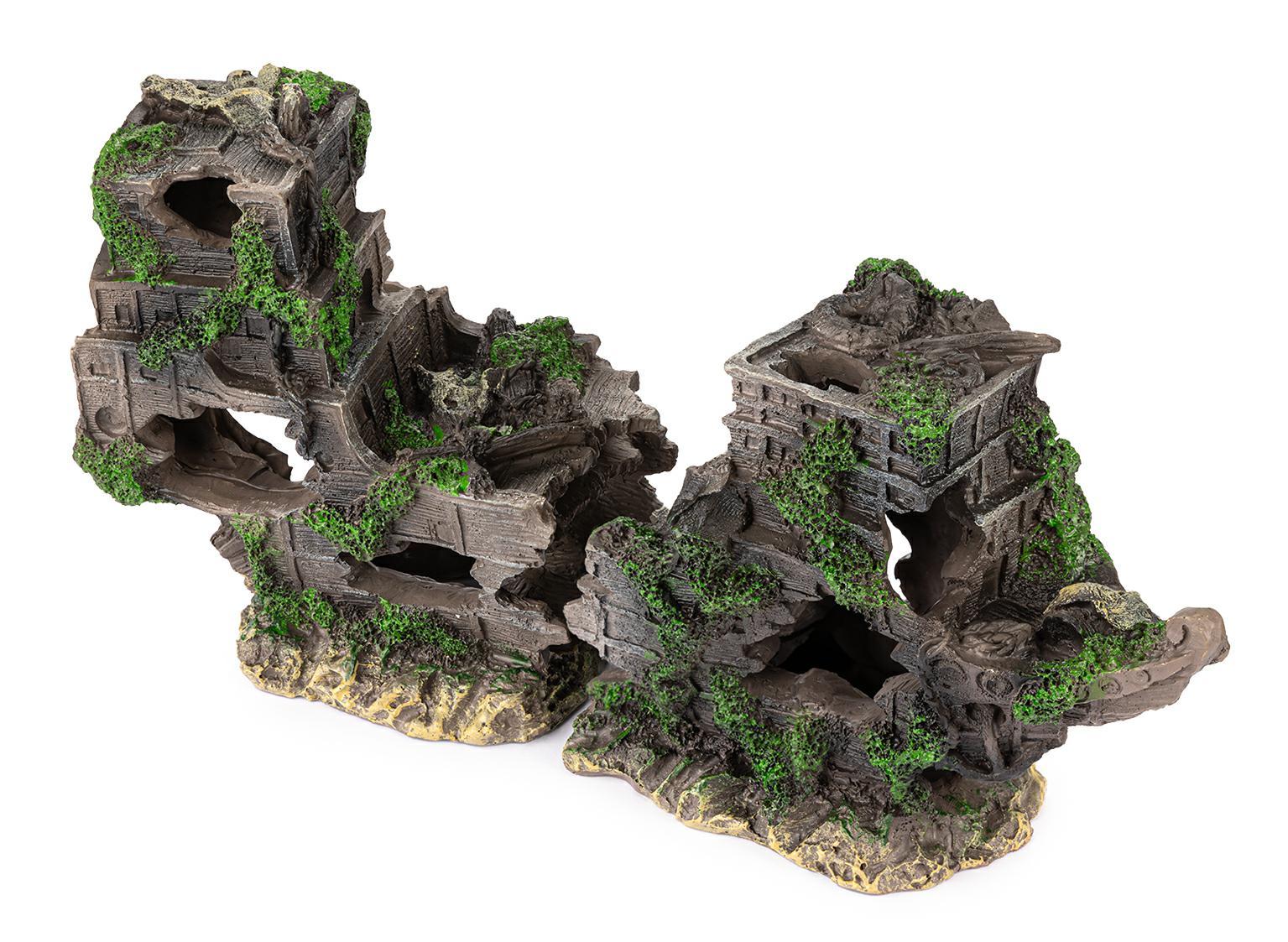 Pokryty sztucznym mchem, wrak statku nie tylko wygląda atrakcyjnie, ale również zapewnia rybom schronienie i cień. To doskonałe miejsce do ukrycia się dla mniejszych mieszkańców akwarium. Ozdoba wykonana jest z bezpiecznego dla ryb poliestru, który łatwo tonie.