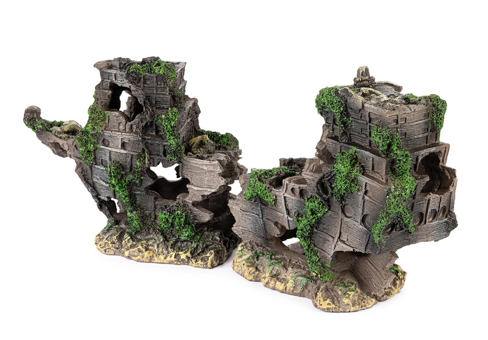 Ozdoba akwariowa w postaci wraku statku to idealny wybór dla pasjonatów akwarystyki. Dzięki niej stworzysz naturalny klimat w swoim zbiorniku. Statek składa się z dwóch części, co pozwala na dowolne aranżowanie przestrzeni w akwarium.