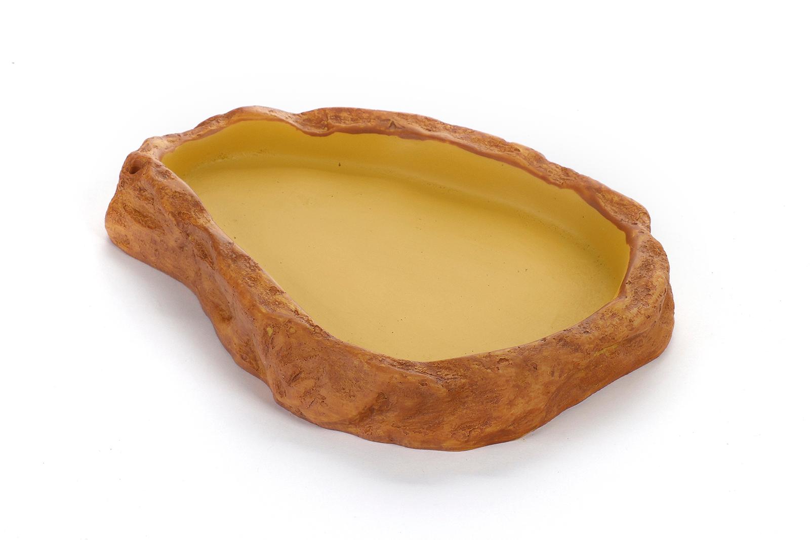 Jej naturalny wygląd przypominający kamień doskonale wpasuje się w estetykę każdego terrarium, nie zakłócając jego harmonijnego wystroju. Płaski kształt miski jest szczególnie korzystny dla mniejszych zwierząt, takich jak gady, płazy czy owady, minimalizując ryzyko utonięcia.