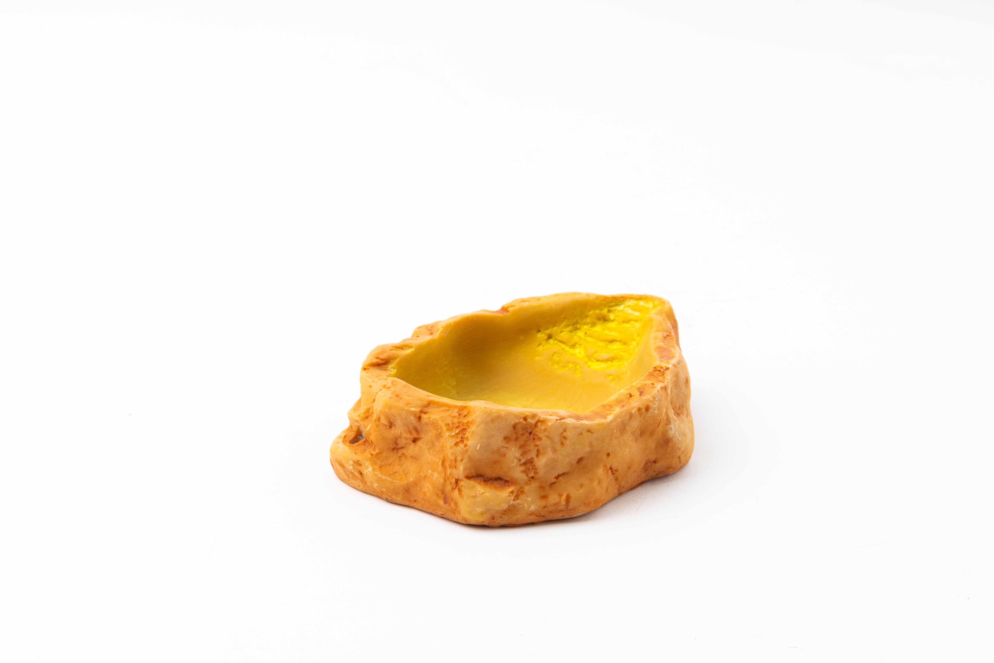 Jej kompaktowe wymiary (9,5 cm × 6,5 cm × 2,5 cm) oraz naturalistyczne wykończenie, które imituje skały, sprawiają, że doskonale wkomponuje się w każdy wystrój terrarium. Miska jest wykonana z wytrzymałej żywicy poliestrowej, co zapewnia odporność na uszkodzenia mechaniczne oraz łatwość w utrzymaniu czystości.