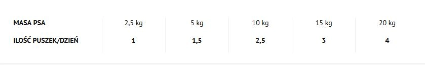 | Masa psa (kg) | Ilość saszetek/dzień |