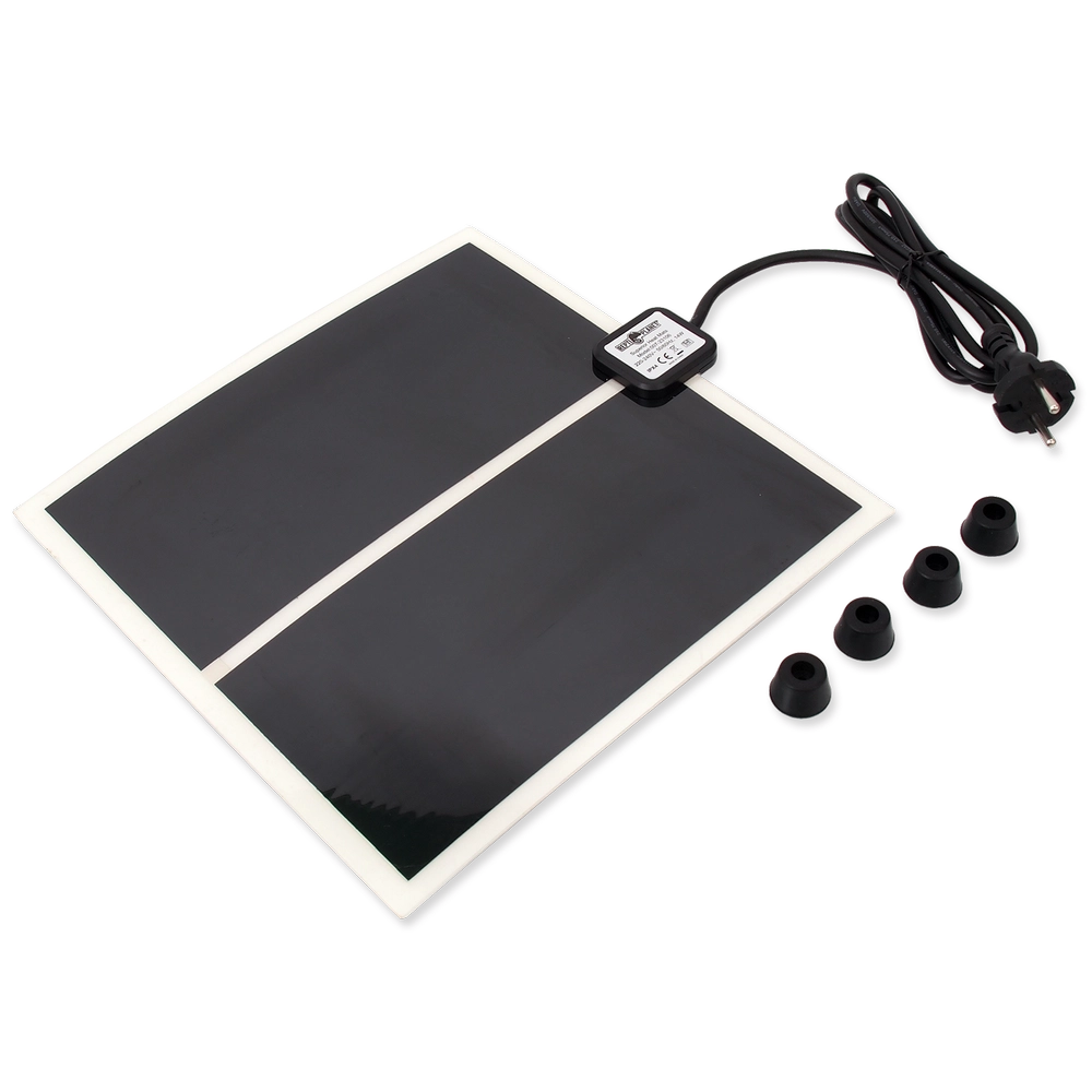 Podkładkę termiczną należy umieścić na dolnej lub bocznej szybie terrarium. Nie może mieć bezpośredniego kontaktu z materiałami łatwopalnymi.