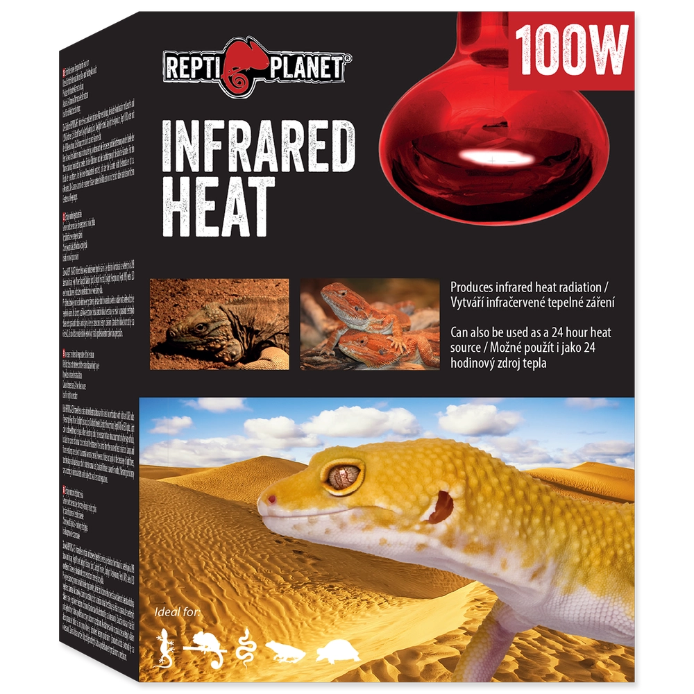 Żarówka REPTI PLANET INFRARED HEAT emituje promieniowanie podczerwone i jest idealna w połączeniu z innymi żarówkami i żarówkami UVB lub oprawami oświetleniowymi LED.