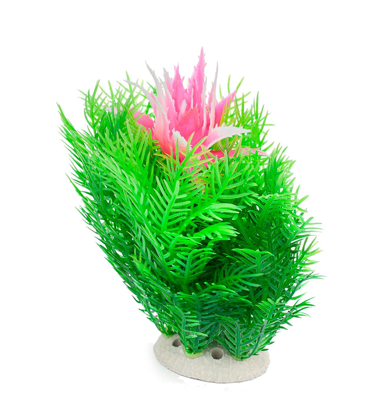 Roślina wykonana z tworzywa sztucznego jest bezpieczna dla środowiska wodnego. Po umieszczeniu w wodzie nie uwalnia szkodliwych substancji. Jej rozmiar to 10 cm, a kolorystyka to połączenie różowego i zielonego. Zainwestuj w tę dekorację i ciesz się pięknym akwarium!