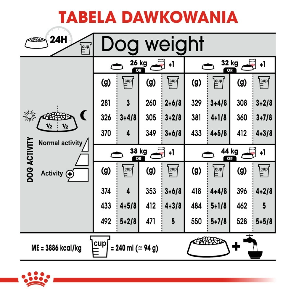 | Waga psa | 26 kg | 32 kg | 38 kg | 44 kg |