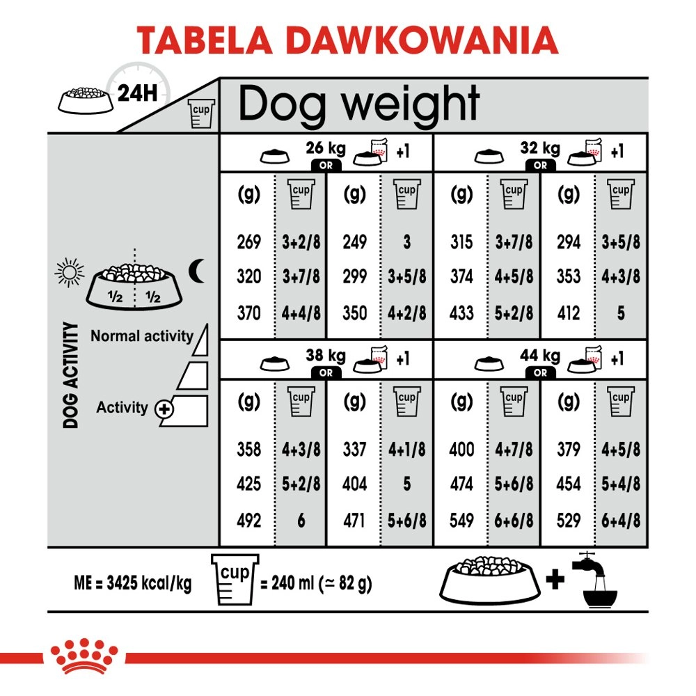 | Waga psa | 26 kg | 32 kg | 38 kg | 44 kg |