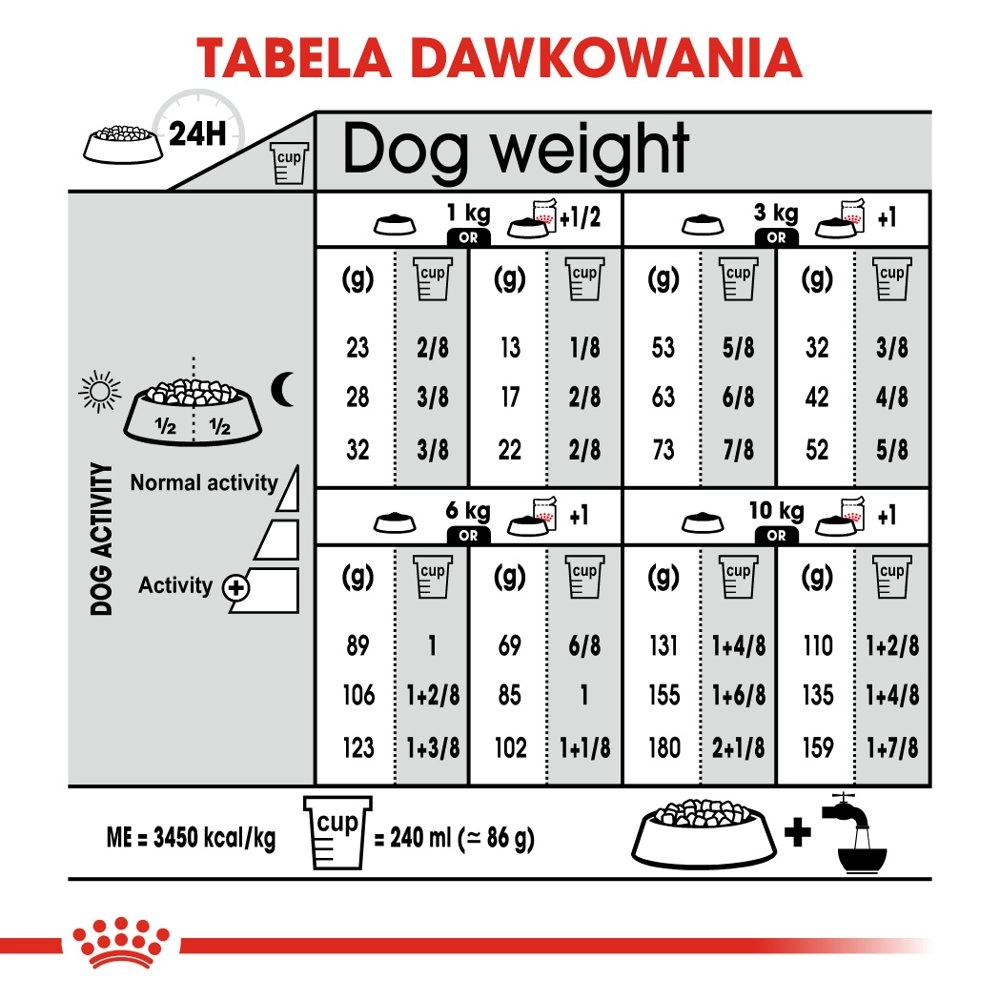 | Waga psa | 1 kg | 3 kg | 6 kg | 10 kg |