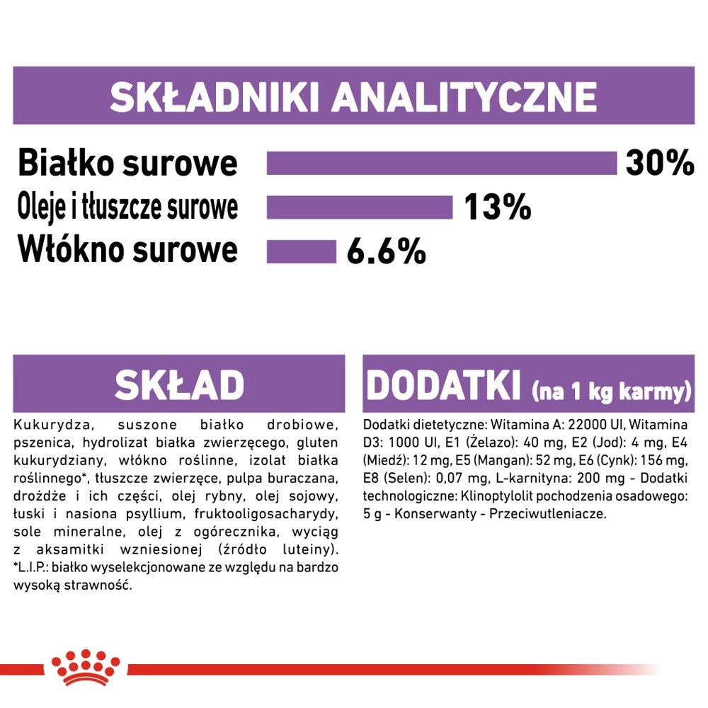 Karma ROYAL CANIN Mini Sterilised jest stworzona z myślą o psach po sterylizacji, które mają tendencję do przybierania na wadze. Zawiera składniki wspierające uczucie sytości, pomagając utrzymać prawidłową masę ciała i aktywność Twojego pupila. Doskonała dla psów powyżej 10 miesiąca życia i o masie ciała do 10 kg, ta karma dostarcza niezbędnych składników odżywczych, by Twój pies cieszył się zdrowiem i energią.