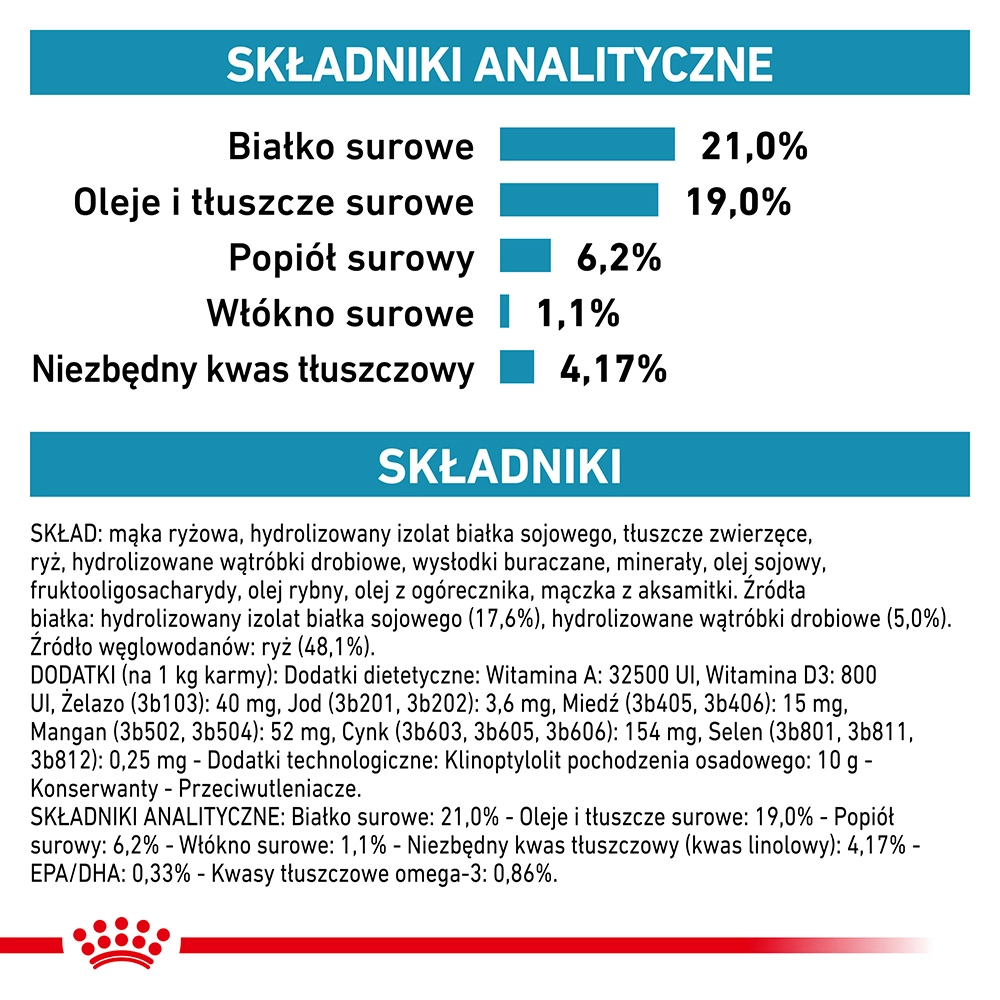 ROYAL CANIN Hypoallergenic 14kg to pełnoporcjowa dieta dla dorosłych psów, stworzona z myślą o psach z ryzykiem nietolerancji pokarmowej. Dzięki starannie dobranym składnikom, karma ta wspiera zdrowie Twojego pupila.