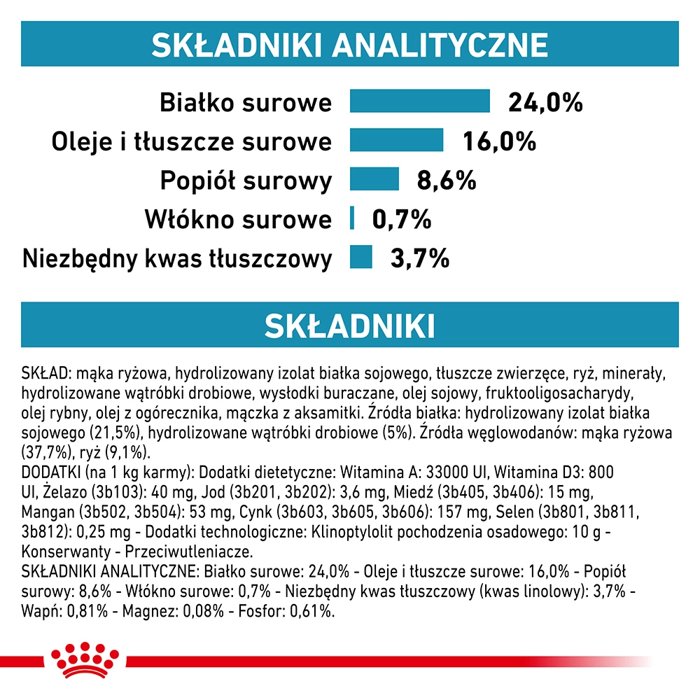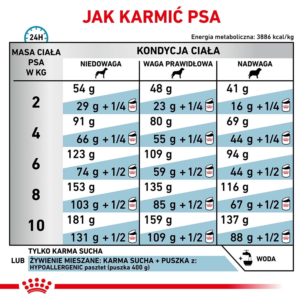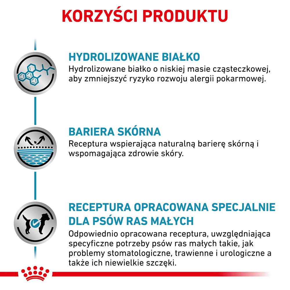 ROYAL CANIN Hypoallergenic Small Dog 1kg to pełnoporcjowa karma dietetyczna stworzona z myślą o dorosłych psach ras małych, o wadze do 10 kg. Dzięki starannie dobranym składnikom, karma ta pomaga w zmniejszeniu ryzyka nietolerancji pokarmowej. Zawiera wyselekcjonowane źródła białka i węglowodanów, co wspiera zdrowie Twojego pupila.