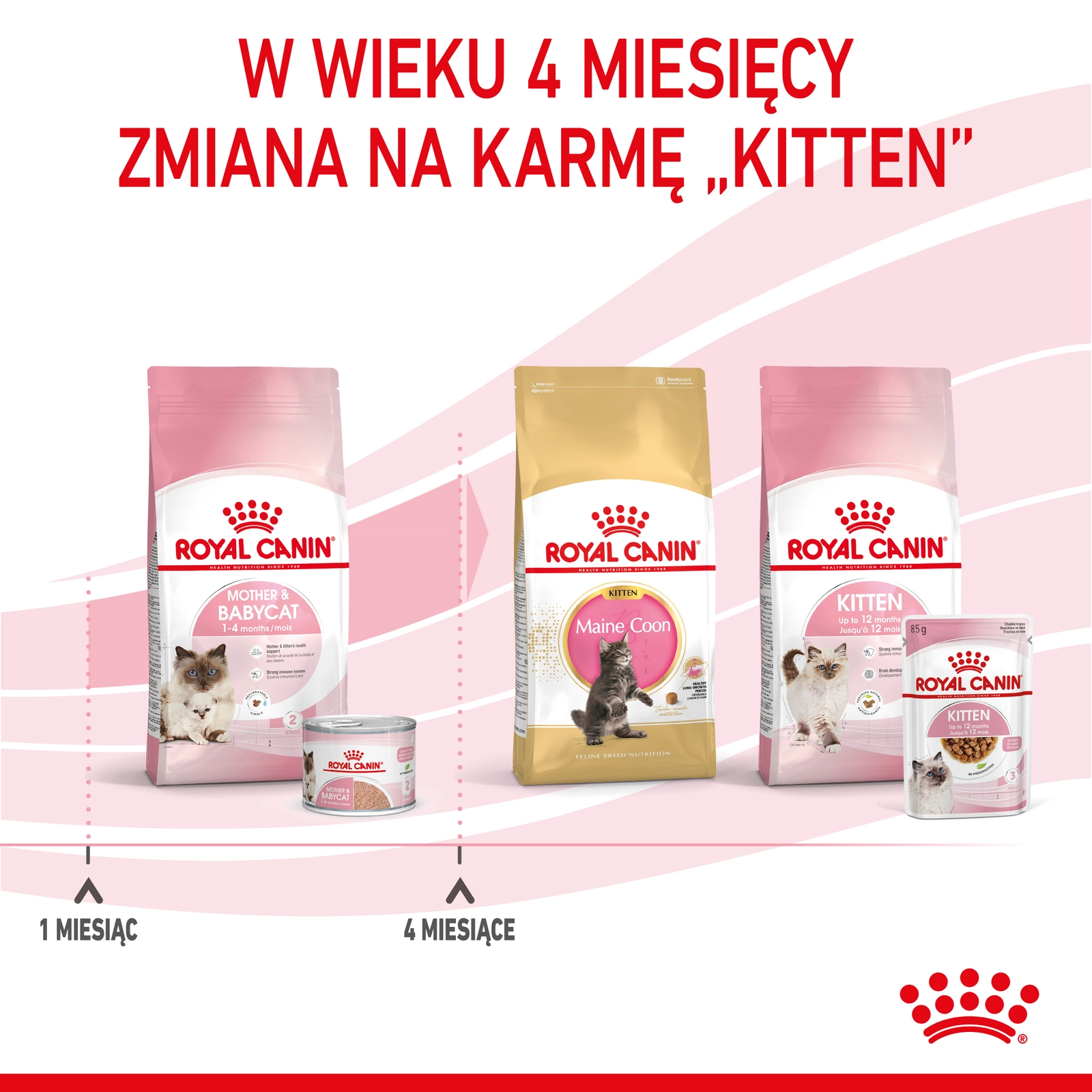 | 16 + tygodni | 1 1/4-1 1/2 puszka lub Royal Canin Kitten | 1/2 puszka + 30-50 g lub Royal Canin Kitten |