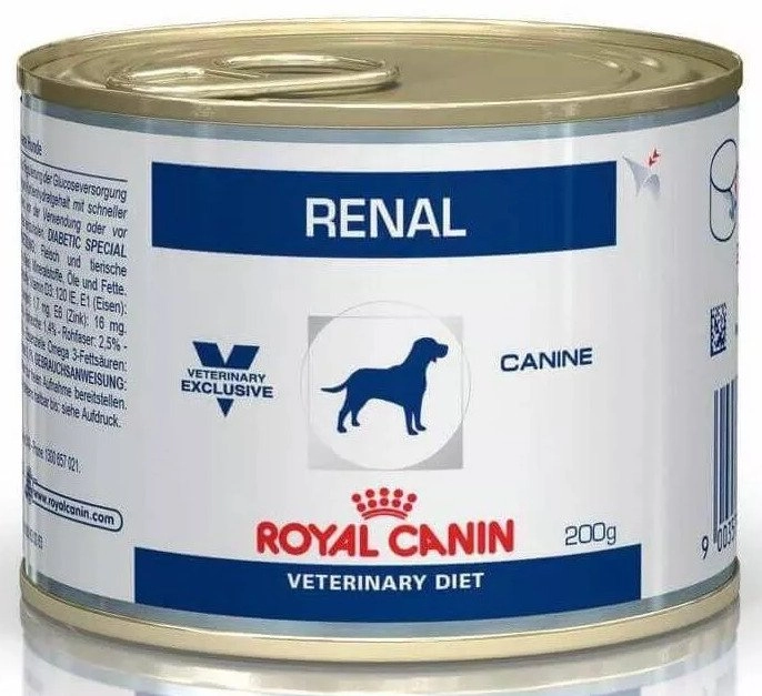 Pełnoporcjowa karma mokra ROYAL CANIN Renal Canine w puszce o wadze 200g, stworzona z myślą o psach z przewlekłą niewydolnością nerek. Dzięki starannie dobranym składnikom, wspiera zdrowie Twojego pupila i dostarcza niezbędnych składników odżywczych.