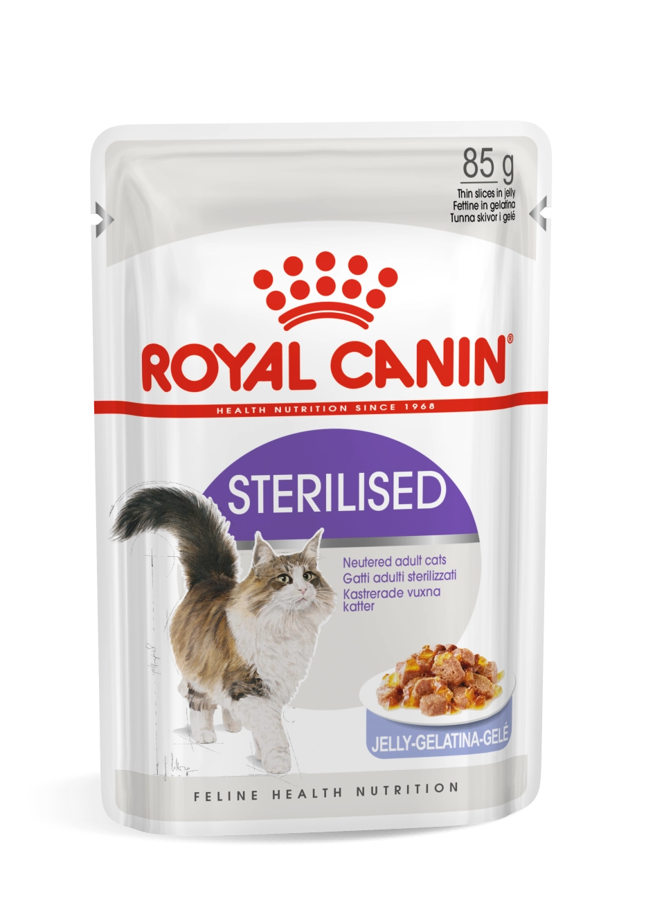 ROYAL CANIN Sterilised W Galaretce 12x85g to karma mokra stworzona z myślą o kotach po zabiegu sterylizacji lub kastracji. Dzięki odpowiedniemu bilansowi soli mineralnych wspiera ochronę układu moczowego, co jest szczególnie istotne dla zdrowia Twojego pupila.