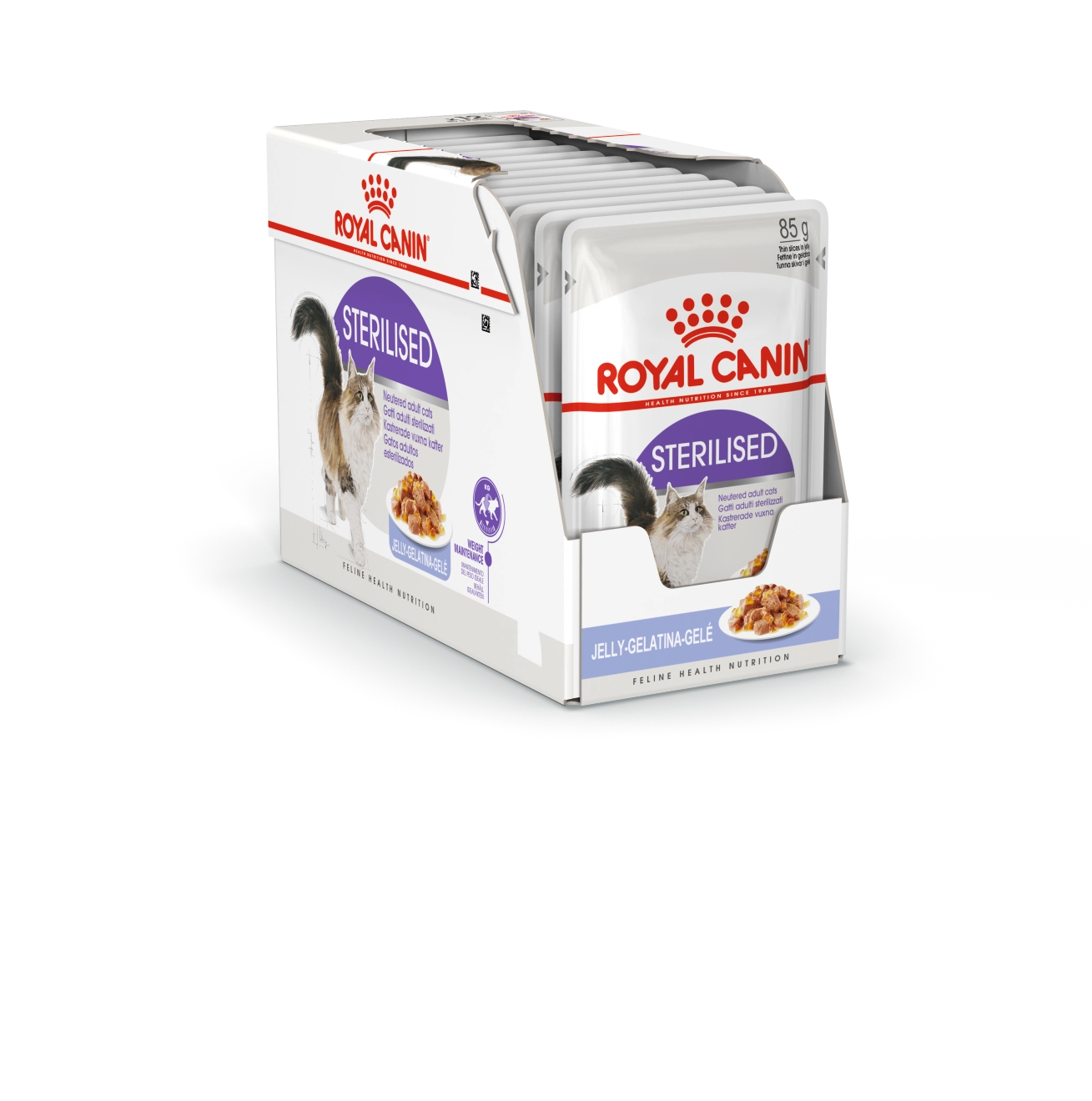Karma ROYAL CANIN Sterilised w sosie została stworzona z myślą o kotach po sterylizacji. Dzięki odpowiednim proporcjom składników oraz delikatnym kawałkom w soczystym sosie, jest chętnie wybierana przez koty. Ograniczona zawartość tłuszczu oraz dodatek L-karnityny pomagają w utrzymaniu prawidłowej wagi i wspierają metabolizm lipidów.