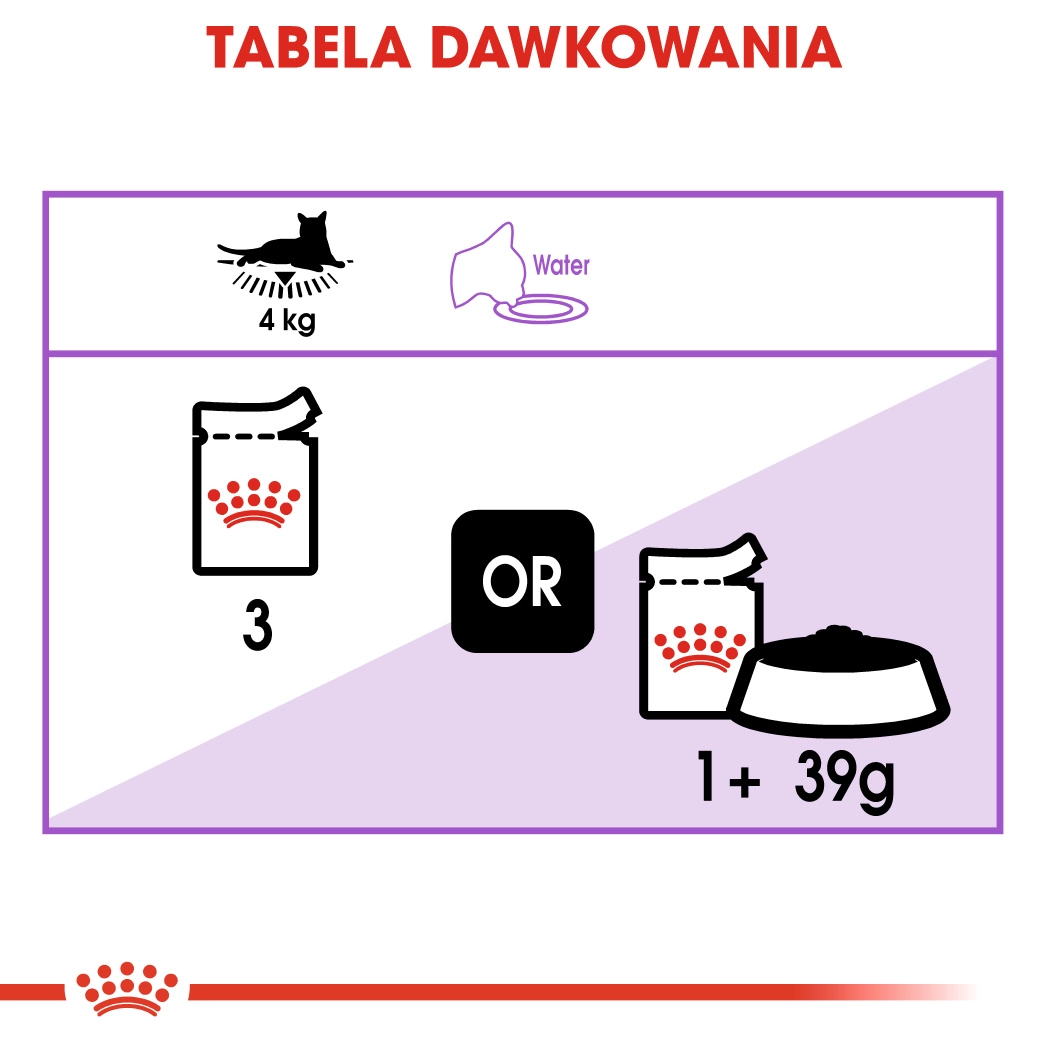 | 4 kg | 3 + 1/2 saszetki | 1 saszetka + 58-70g karmy suchej |