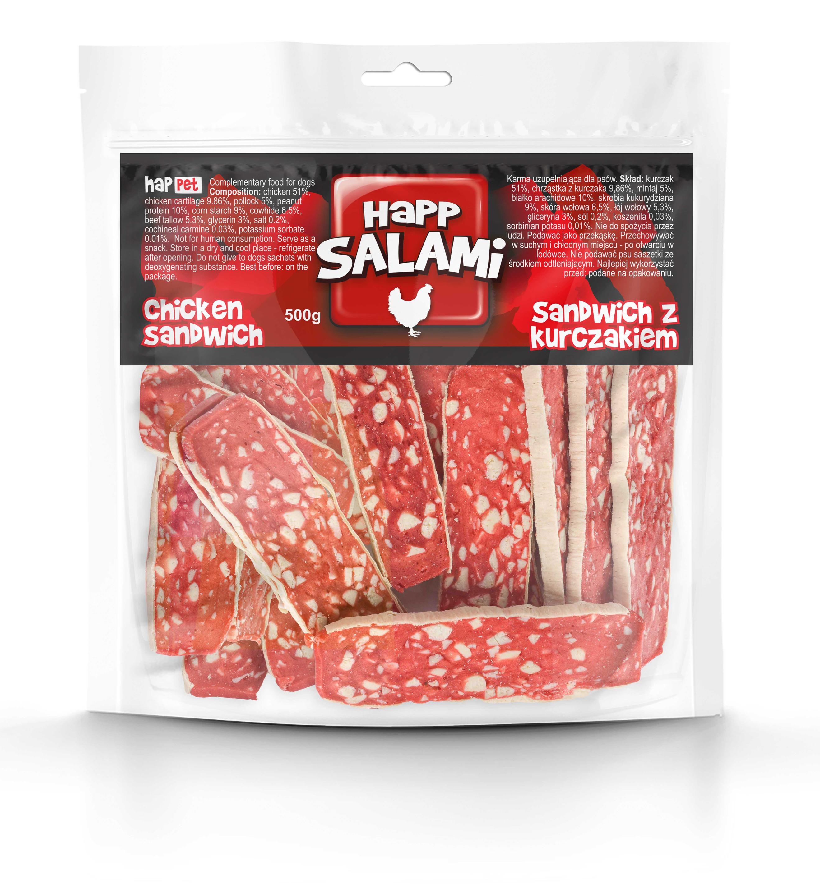 Podaruj swojemu psu wyjątkowy przysmak, który z pewnością go zachwyci! Salami Sandwich z kurczakiem to doskonały wybór dla każdego psa. Dzięki wysokiej zawartości kurczaka (51%) dostarcza pełnowartościowego białka, które wspiera zdrową masę mięśniową oraz energię.