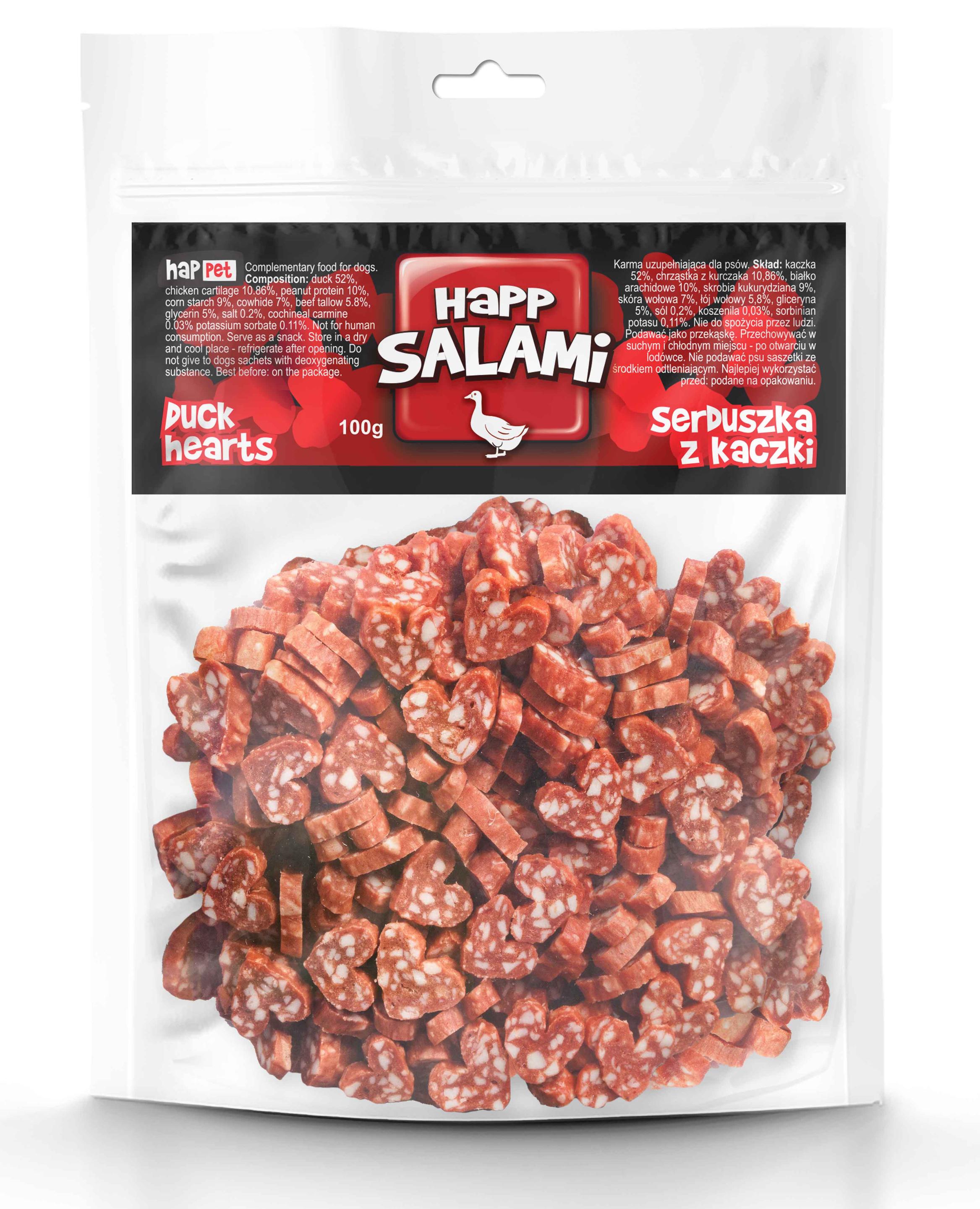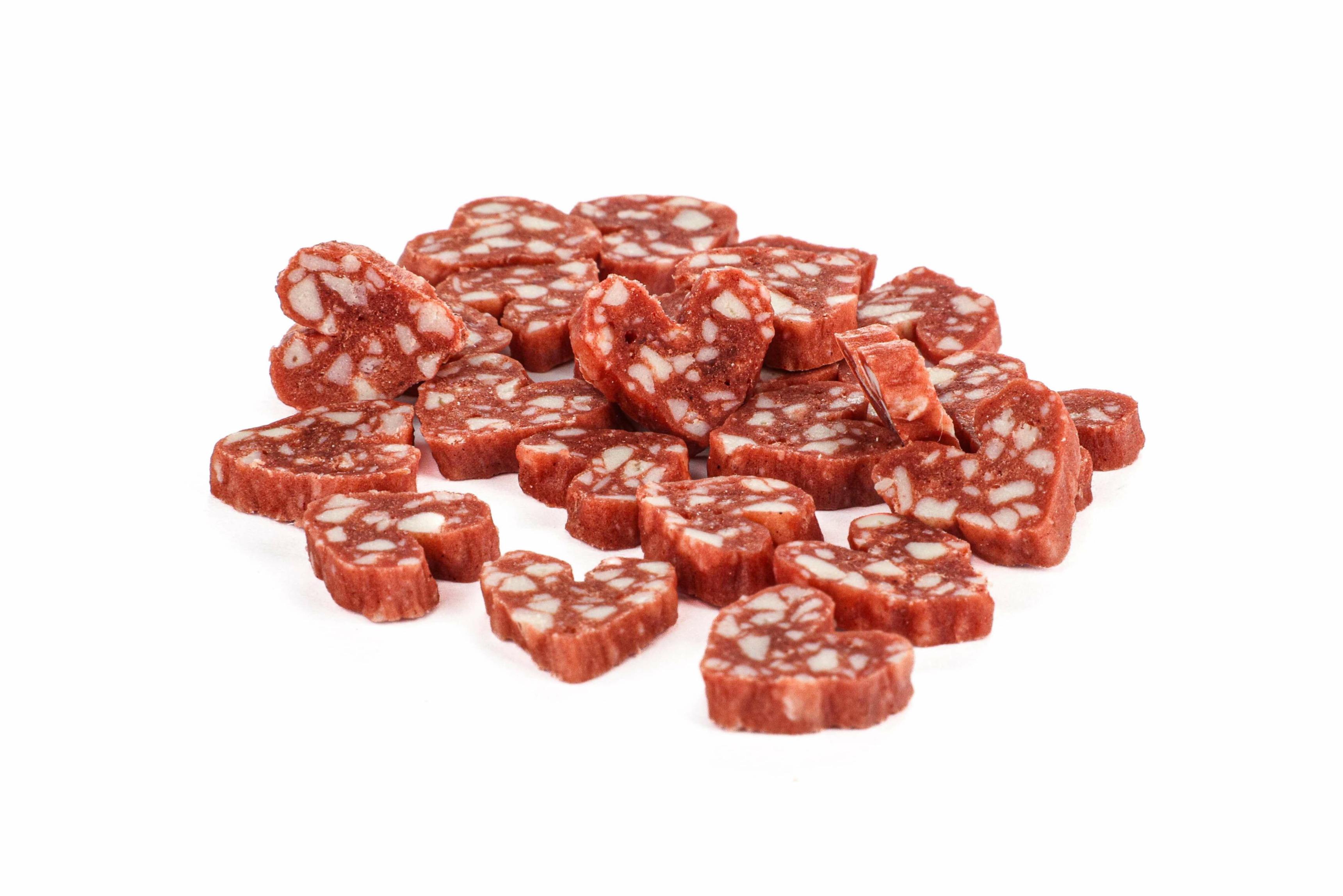Podaruj swojemu psu wyjątkowy przysmak, który przyciąga uwagę swoim autentycznym wyglądem! Salami z kaczki w kształcie serduszek to idealna przekąska, która zachwyca intensywnym aromatem i unikalną fakturą.