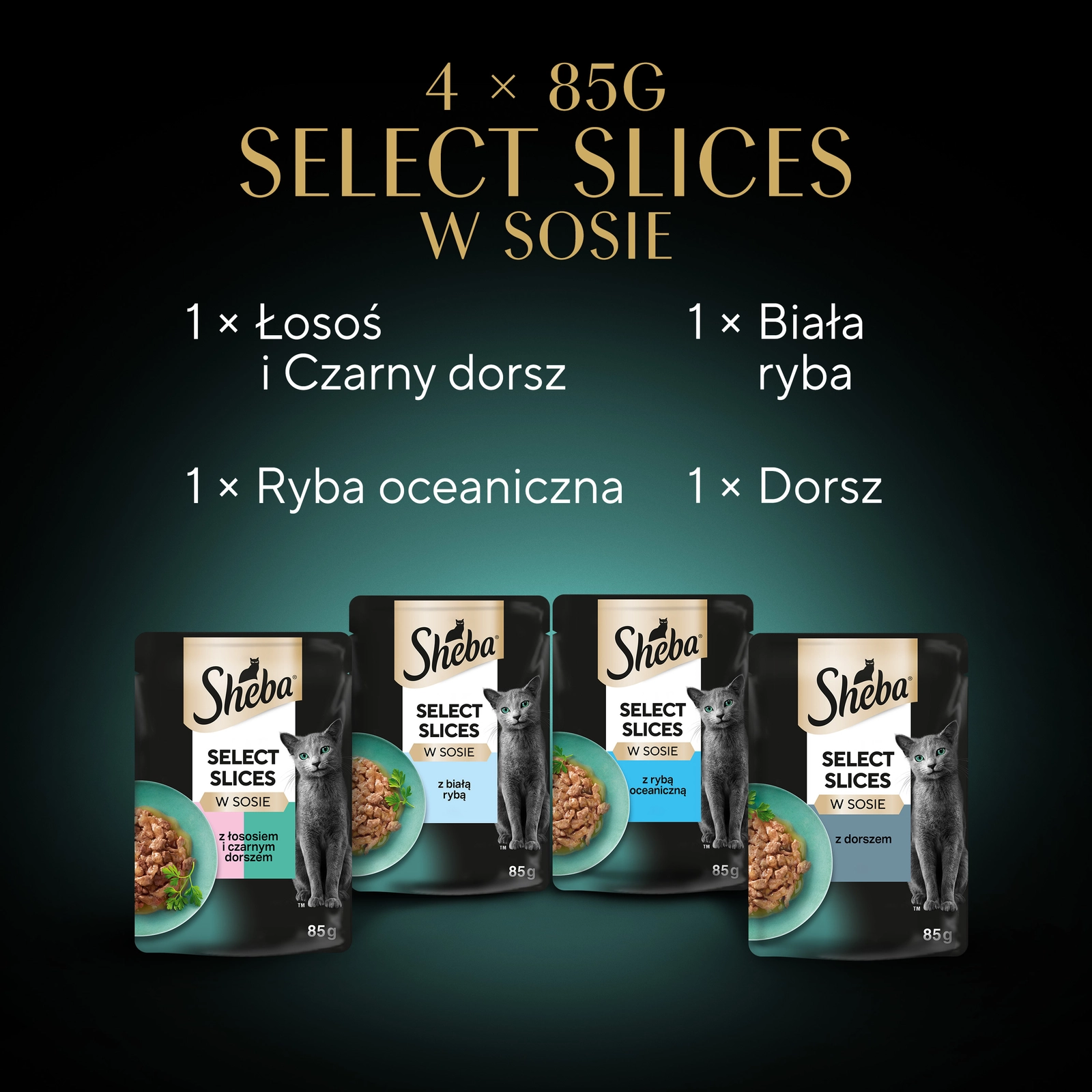 Sheba Selection In Sauce to idealna propozycja dla wybrednych kotów. Ta pełnoporcjowa karma dostarcza niezbędnych składników odżywczych, zaspokajając jednocześnie kocie podniebienia. Dzięki różnorodnym smakowym wariantom, takim jak biała ryba, łosoś, dorsz i tuńczyk, Twój kot z pewnością znajdzie coś dla siebie.