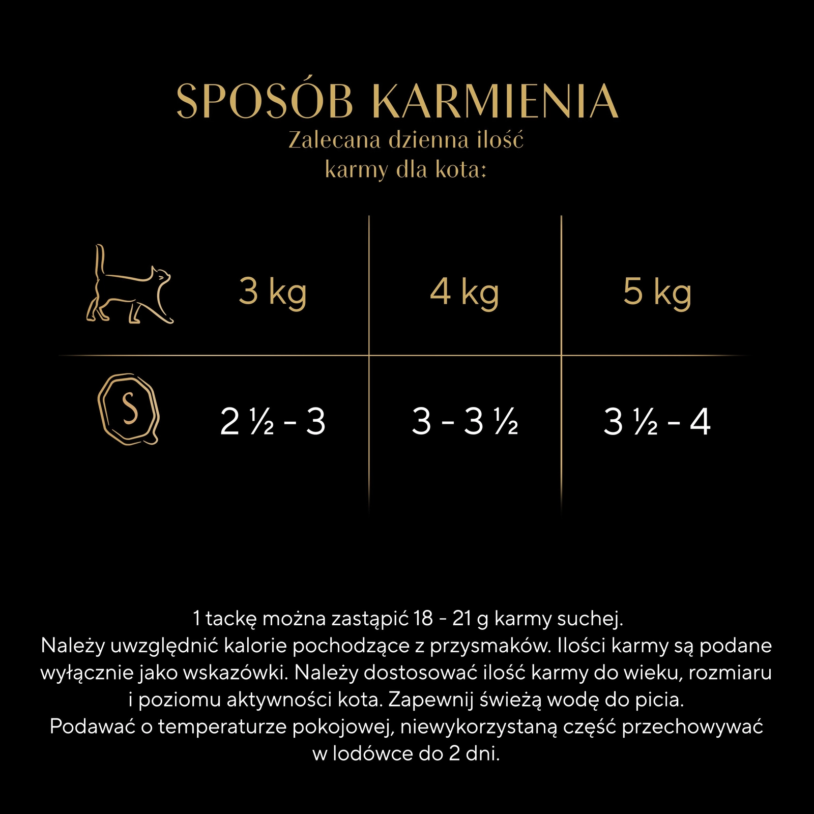 Karma nie zawiera sztucznych barwników, aromatów ani konserwantów. Dzięki temu zapewnia zdrowy i wartościowy posiłek dla Twojego kota, dostarczając mu codziennie nowych smakowych doznań.
