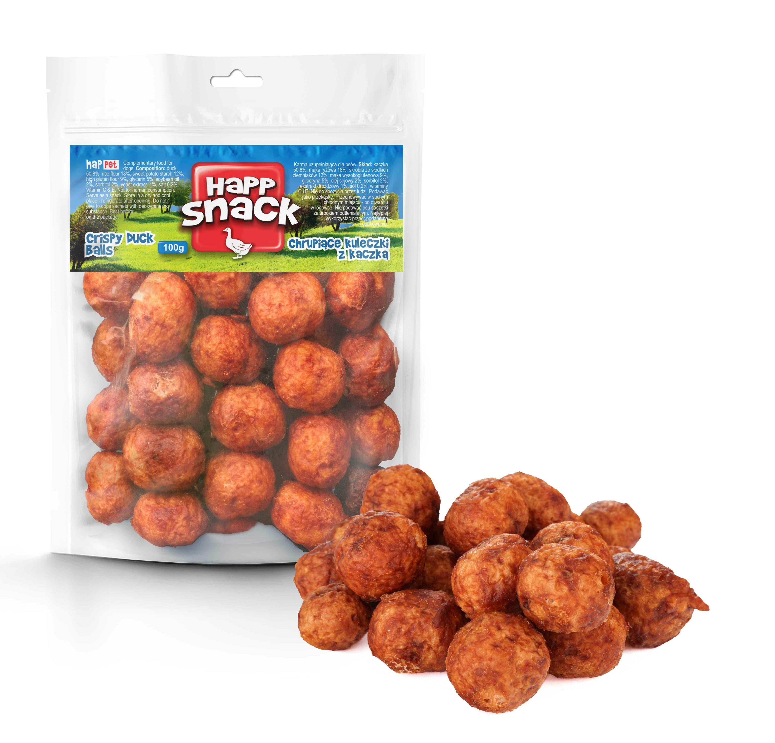 Chrupiące kuleczki z kaczką 100gRozpieszczaj swojego pupila pyszną przekąską! Chrupiące kuleczki z kaczką to idealny wybór dla każdego psa, który ceni sobie smak i chrupkość. Zawierają aż 50,8% kaczki, co czyni je bogatym źródłem białka. To wspiera zdrową…