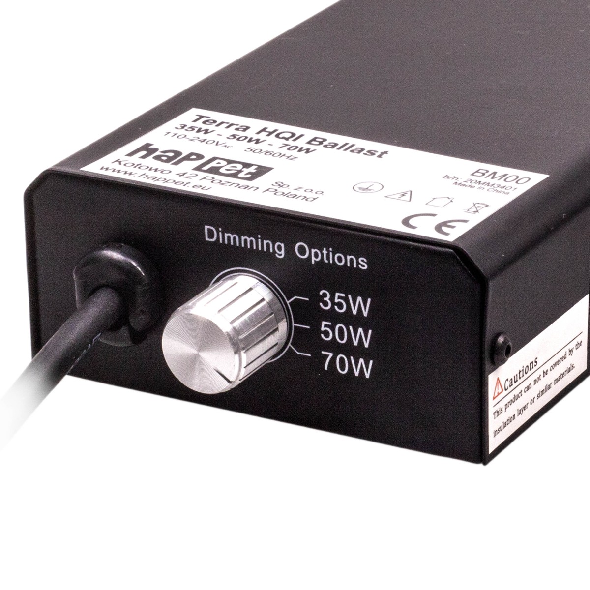 Przed włączeniem upewnij się, że wartość (Watt) na pokrętle odpowiada mocy żarówki metahalogenowej. Wybierz statecznik Terra Metahalogen Happet dla optymalnego oświetlenia UVB i temperatury w Twoim terrarium.