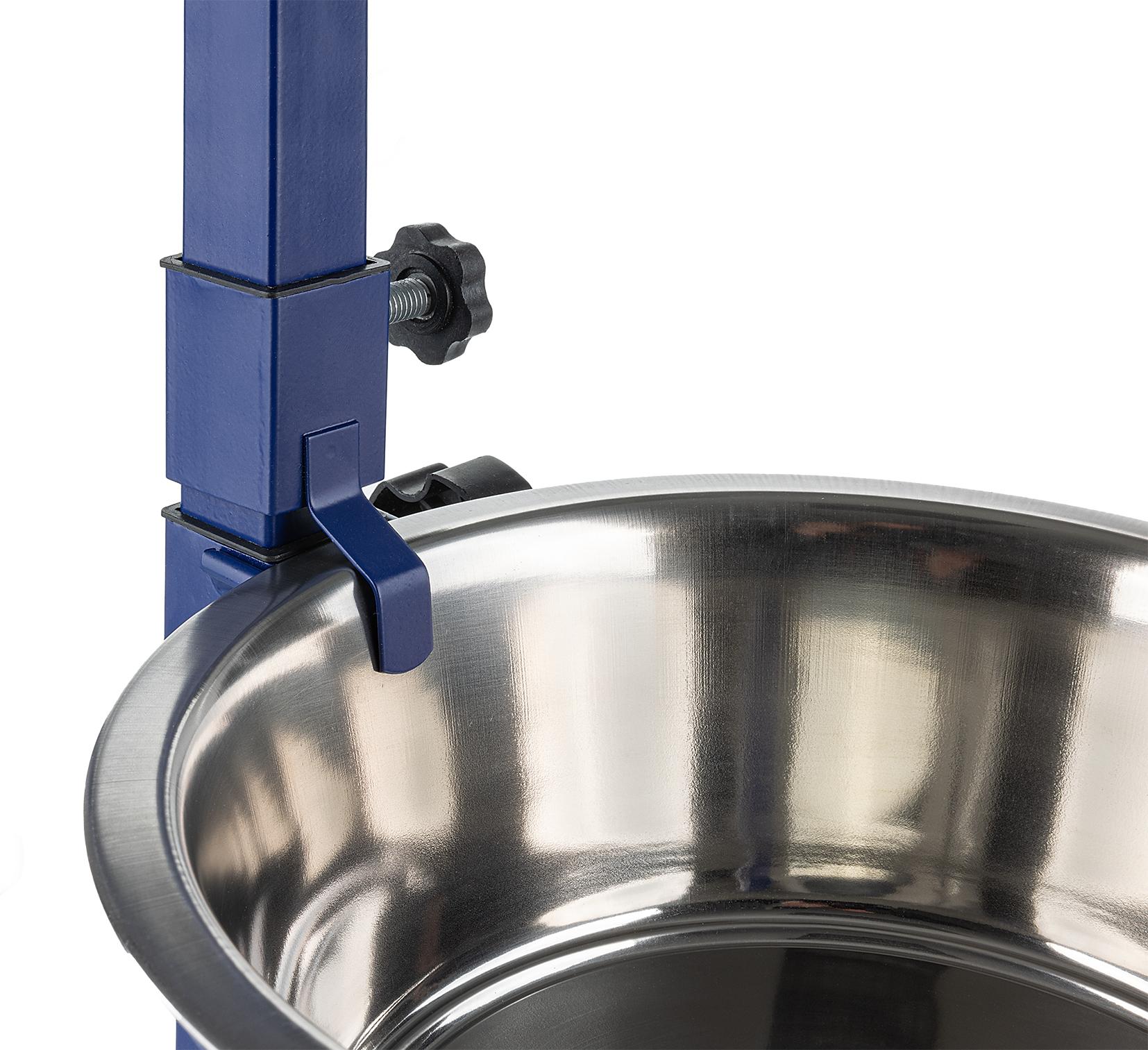 Stojak jest prostą w użyciu, stabilną konstrukcją nie wymagającą narzędzi. Miski wykonane są z łatwej w czyszczeniu stali nierdzewnej, można używać ich zarówno do podawania karmy, jak i wody.