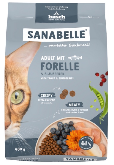 Sanabelle to niemiecka marka suchej karmy dla kotów, która łączy wysoką jakość składników z wyjątkową smakowitością. Oferuje produkty zarówno dla kotów zdrowych, jak i tych z wrażliwym układem pokarmowym. W recepturach dominuje mięso, a wiele wariantów jest bezzbożowych, co czyni je odpowiednimi dla kotów z alergiami lub nietolerancjami.