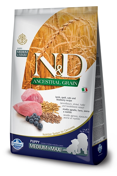 Farmina N&D Ancestral Grain Canine Puppy Medium&Maxi Lamb&Blueberry 12kg • Kod: 8010276033727 • Kategoria: Sucha karma dla psów Farmina. Zamów natychmiast