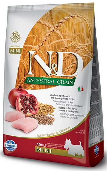 Farmina N&D Ancestral Grain Canine Adult Mini Chicken&Pomegranate 7kg • Kod: 8010276035073 • Kategoria: Sucha karma dla psów Farmina. Zamów z dostawą