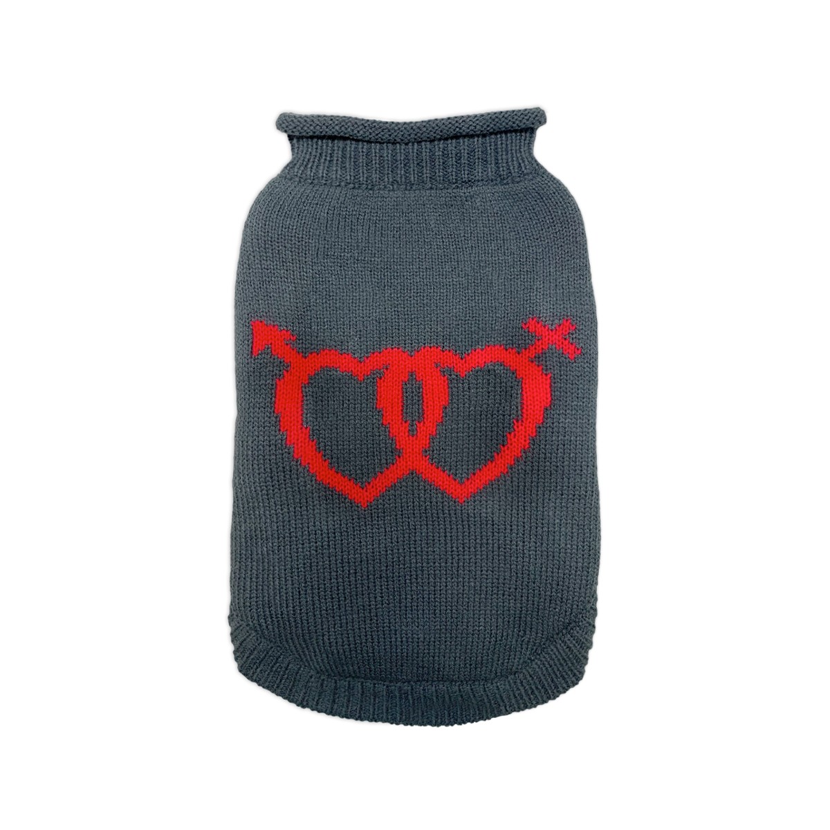 Stylowy sweterek w kolorze grafitowym z wzorem serc. Jest lekki, ciepły i idealny na chłodniejsze dni. Dzięki miękkiemu materiałowi, który jest przyjemny w dotyku, Twój pies będzie czuł się komfortowo. Sweterek zakłada się przez głowę i posiada ściągacz przy szyi, co zapewnia lepsze dopasowanie.