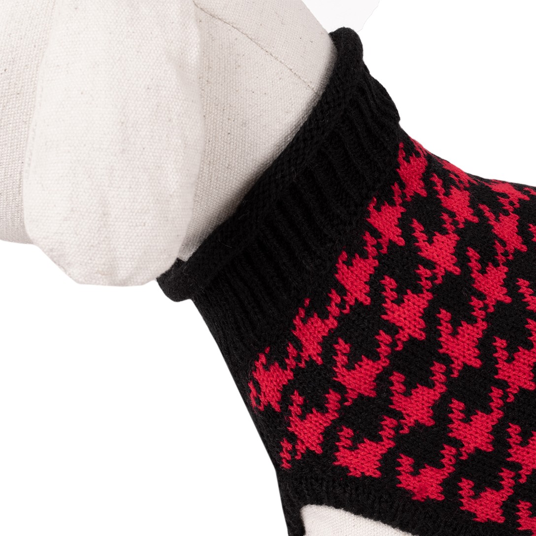 Wybierz dla swojego pupila modny sweterek w czerwono-czarnym kolorze, idealny na chłodne dni. Ten lekki i ciepły sweterek z wzorem pepitki zapewni Twojemu psu komfort i styl.