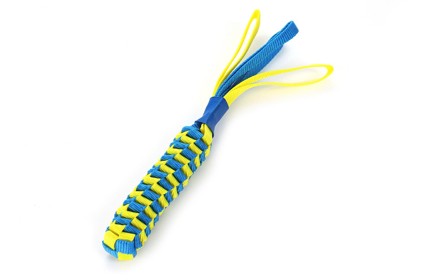 Szarpak ma długość 28 cm i wykonany jest z wysokiej jakości polipropylenu. Dodatkowo, unosi się na wodzie, co czyni go doskonałym wyborem na spacery nad wodą. Jaskrawe kolory (niebiesko-żółty) nie tylko przyciągają uwagę psa, ale także ułatwiają odnalezienie zabawki w trawie czy wodzie.