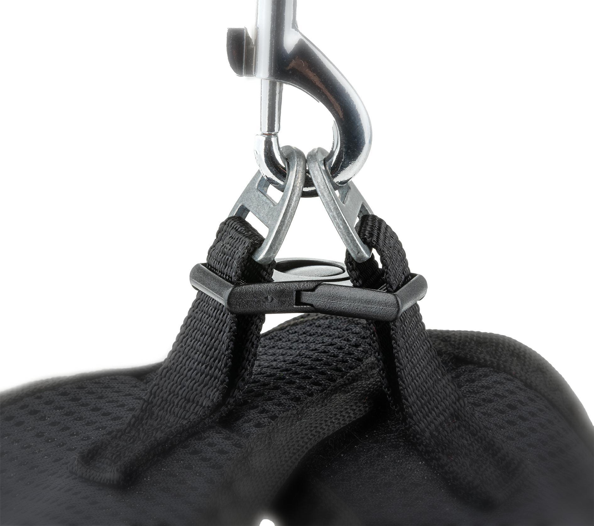 Szelki Air Comfort posiadają obręcz szyjną i piersiową z łączeniem na klatce piersiowej i plecach, zostały wykonane z solidnego, sztywnego materiału przepuszczającego powietrze, z odblaskowymi elementami. Zapinane są dwuetapowo, na plastikową klamrę oraz rzep.