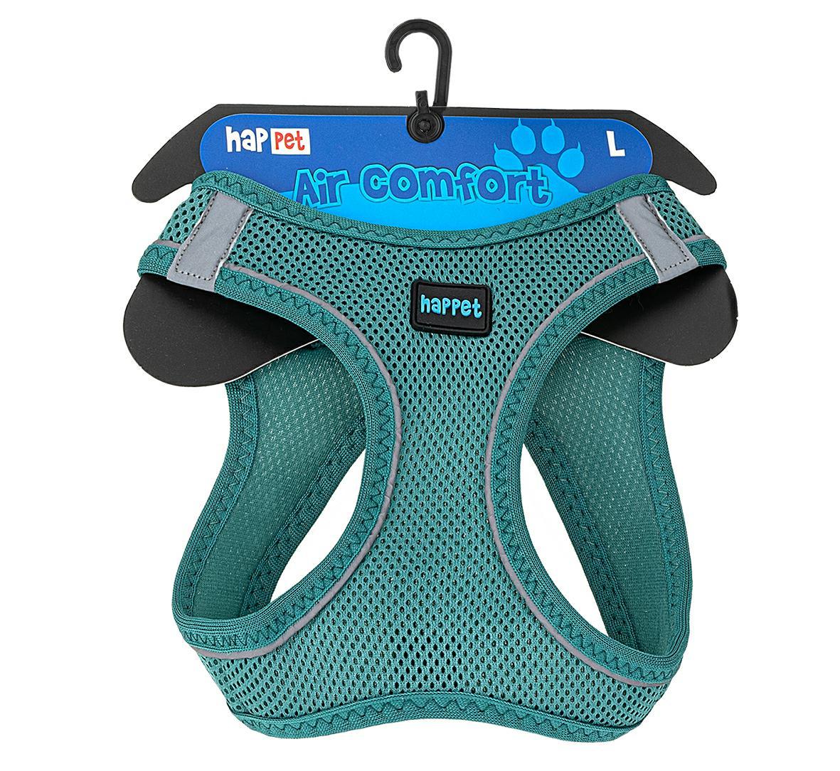 Szelki Air Comfort posiadają obręcz szyjną i piersiową z łączeniem na klatce piersiowej i plecach, zostały wykonane z solidnego, sztywnego materiału przepuszczającego powietrze, z odblaskowymi elementami. Zapinane są dwuetapowo, na plastikową klamrę oraz rzep.