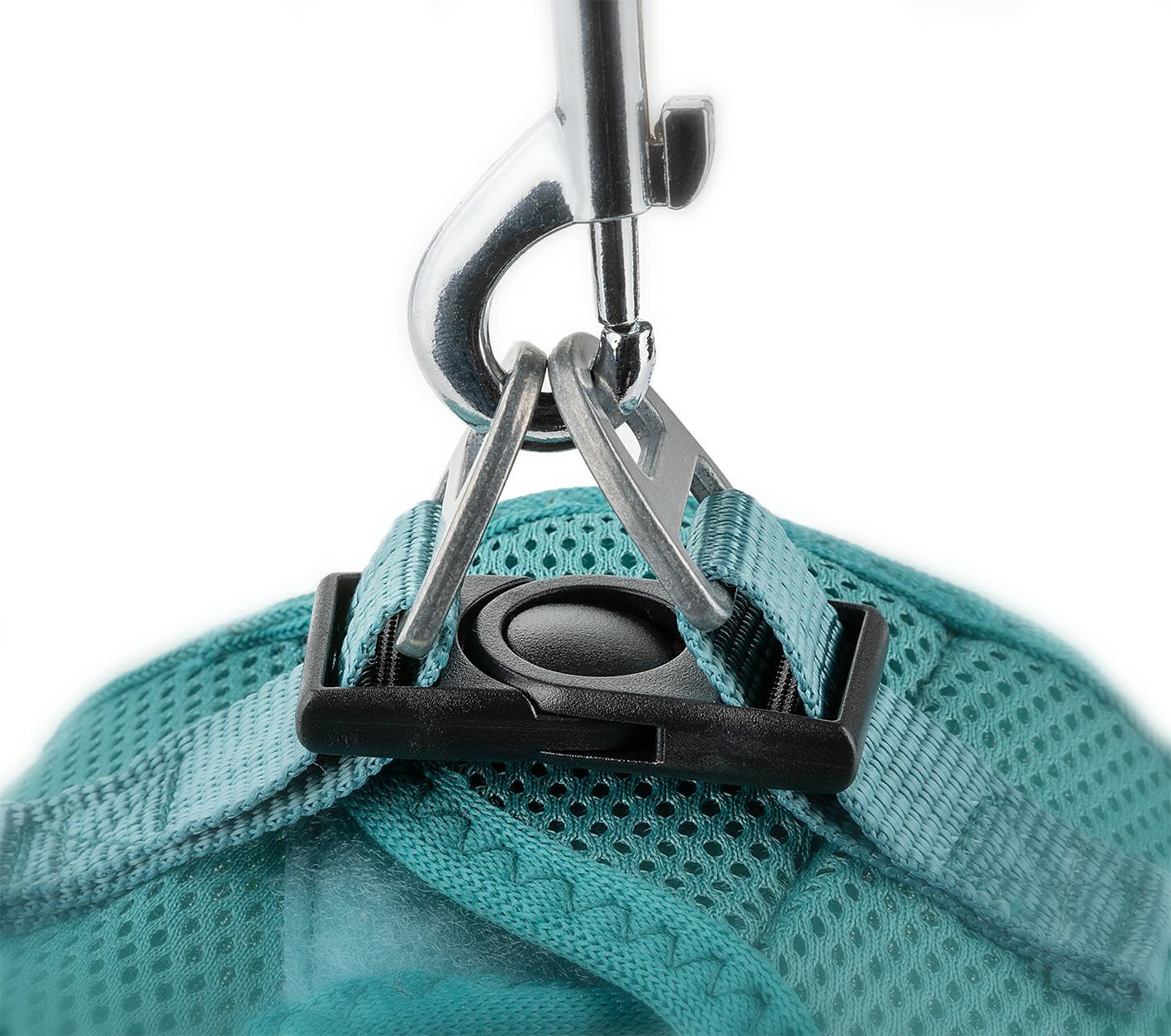 Szelki Air Comfort posiadają obręcz szyjną i piersiową z łączeniem na klatce piersiowej i plecach, zostały wykonane z solidnego, sztywnego materiału przepuszczającego powietrze, z odblaskowymi elementami. Zapinane są dwuetapowo, na plastikową klamrę oraz rzep.