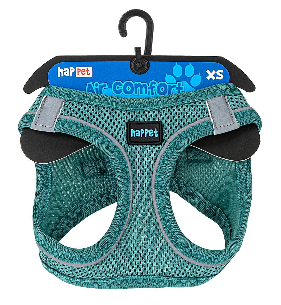 Szelki Air Comfort posiadają obręcz szyjną i piersiową z łączeniem na klatce piersiowej i plecach, zostały wykonane z solidnego, sztywnego materiału przepuszczającego powietrze, z odblaskowymi elementami. Zapinane są dwuetapowo, na plastikową klamrę oraz rzep.