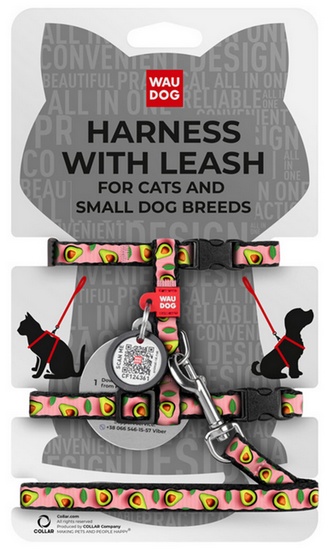 Collar WauDog Nylon Szelki se smyczą nylonowe anatomiczne w kształcie litery H, z QR-paszportem, plastikowy fastex, wzór AWOKADO NA RÓŻU, rozmiar XS • Kod: mls-22739 • EAN: 4823089376554 • Kategoria: Szelki. Wybierz i dodaj do koszyka