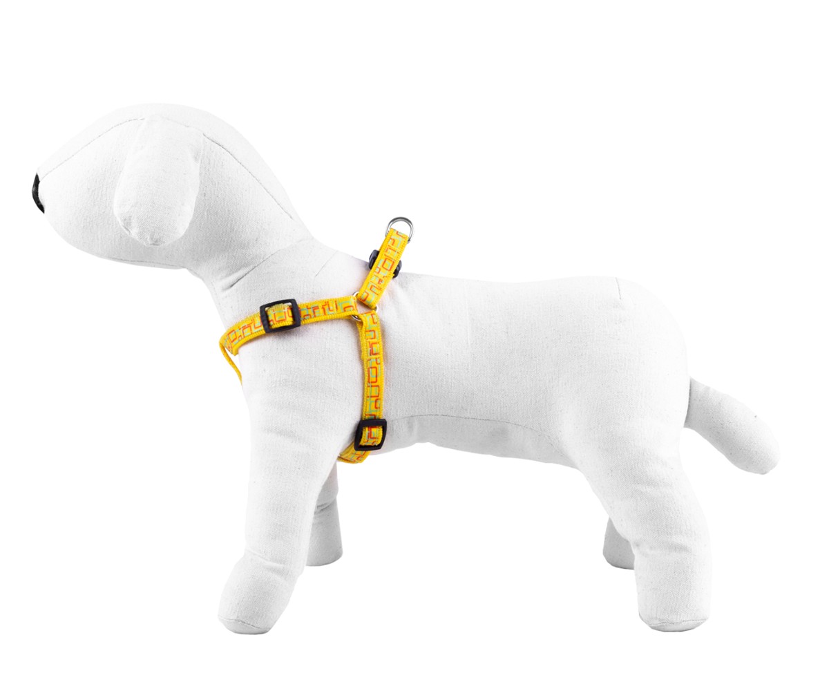 Szelki typu step-in to idealne rozwiązanie dla Twojego pupila. Wykonane z mocnej taśmy nylonowej, zapewniają trwałość i wygodę. Ozdobne wzory dodają im charakteru, a intensywny żółty kolor w połączeniu z czerwono-niebieskimi akcentami przyciąga wzrok.