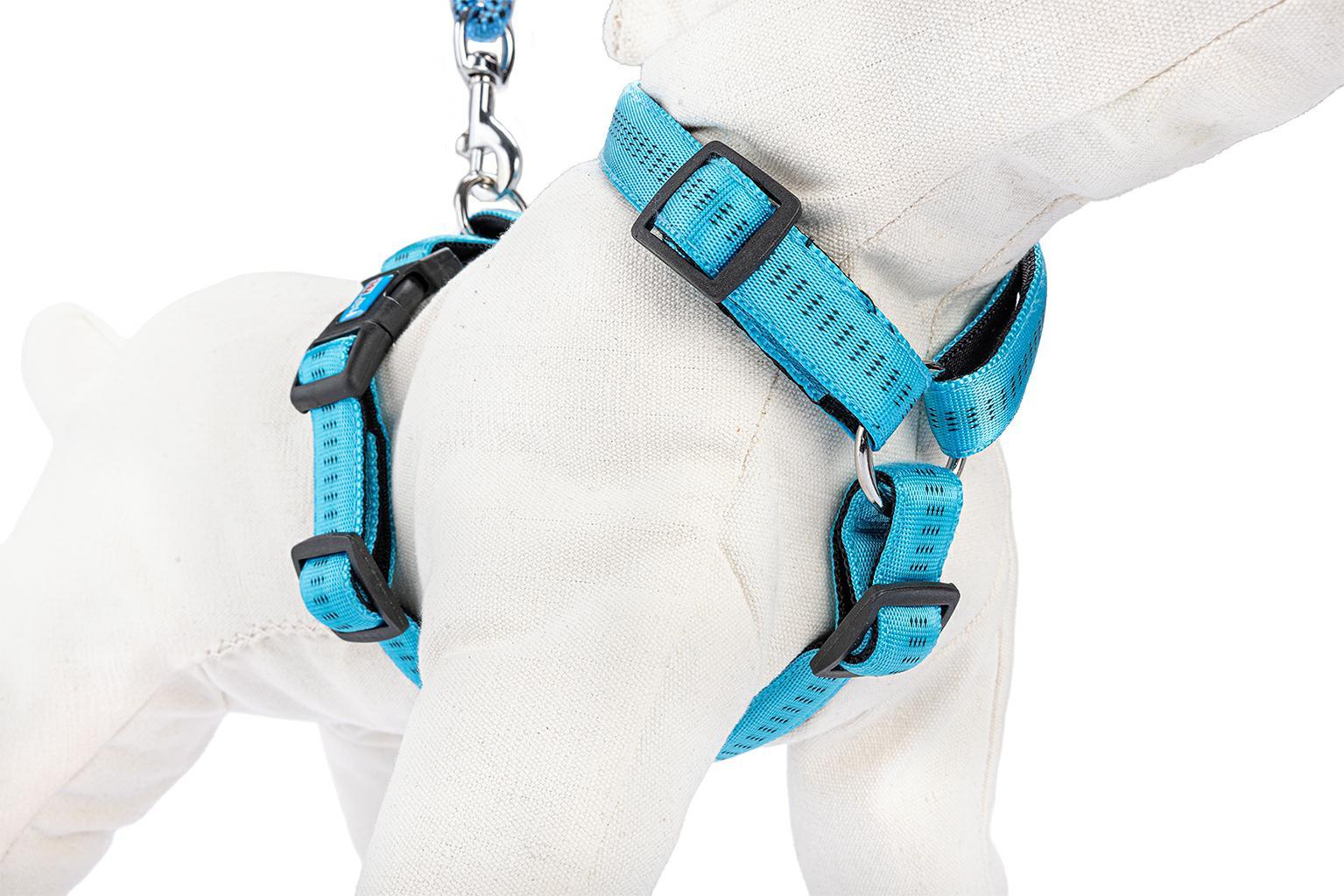 Aby dobrać właściwy rozmiar, zmierz obwód klatki piersiowej swojego pupila. Pomiar wykonaj, gdy pies stoi na czterech łapach. Przy odpowiednim rozmiarze powinieneś móc zmieścić dwa palce pomiędzy szelkami a ciałem psa.